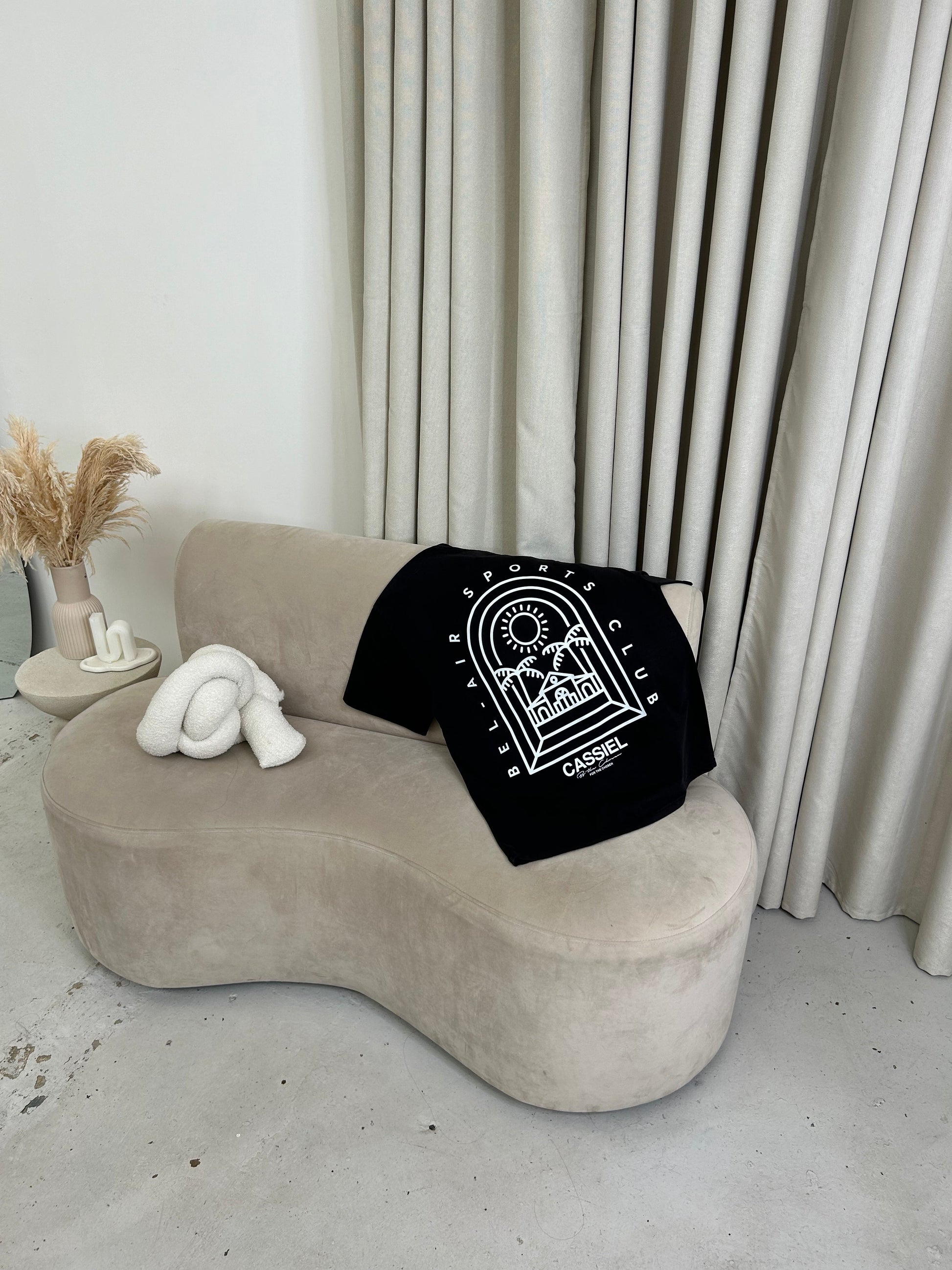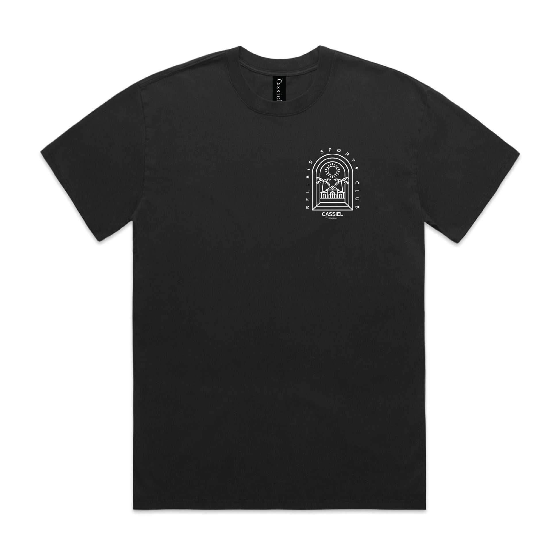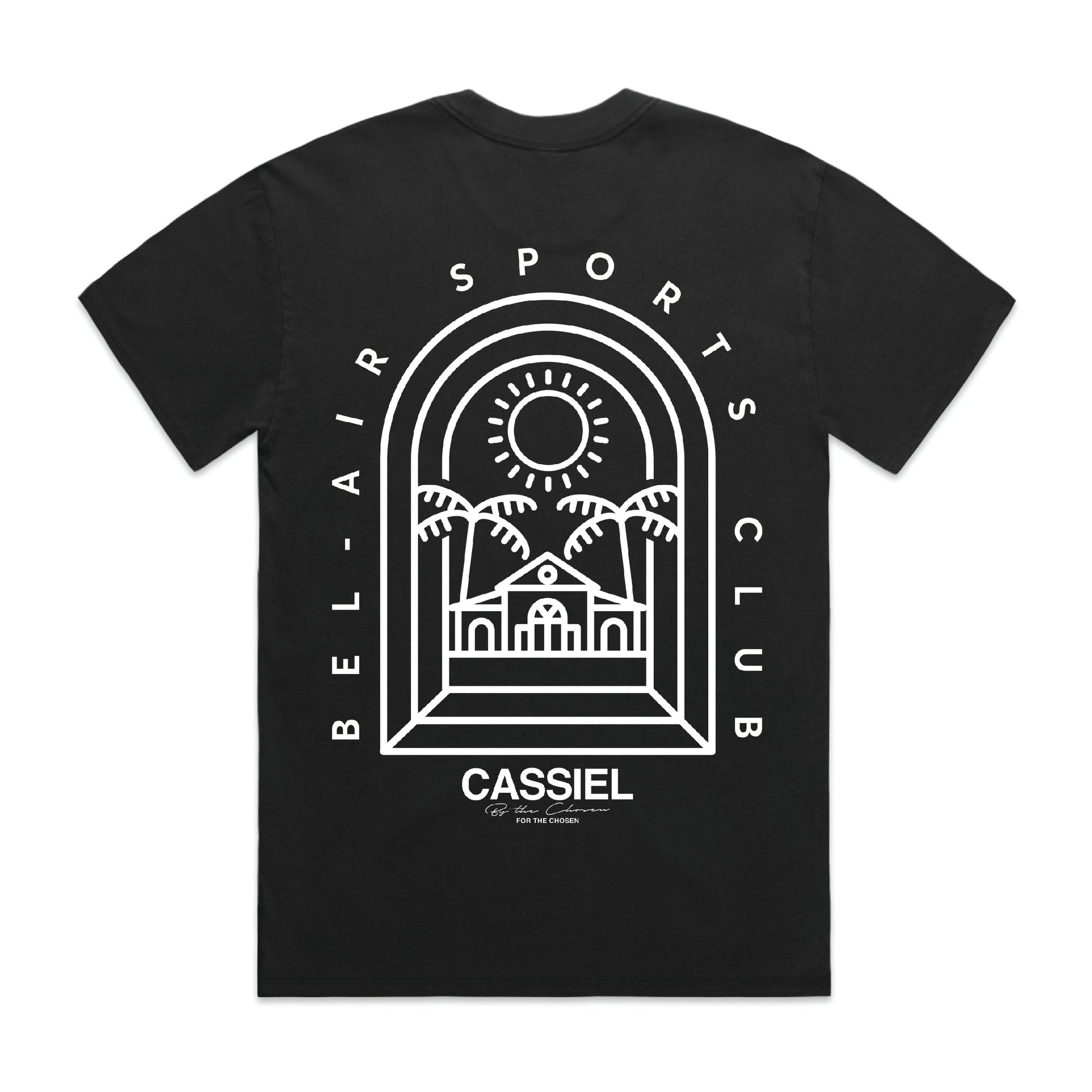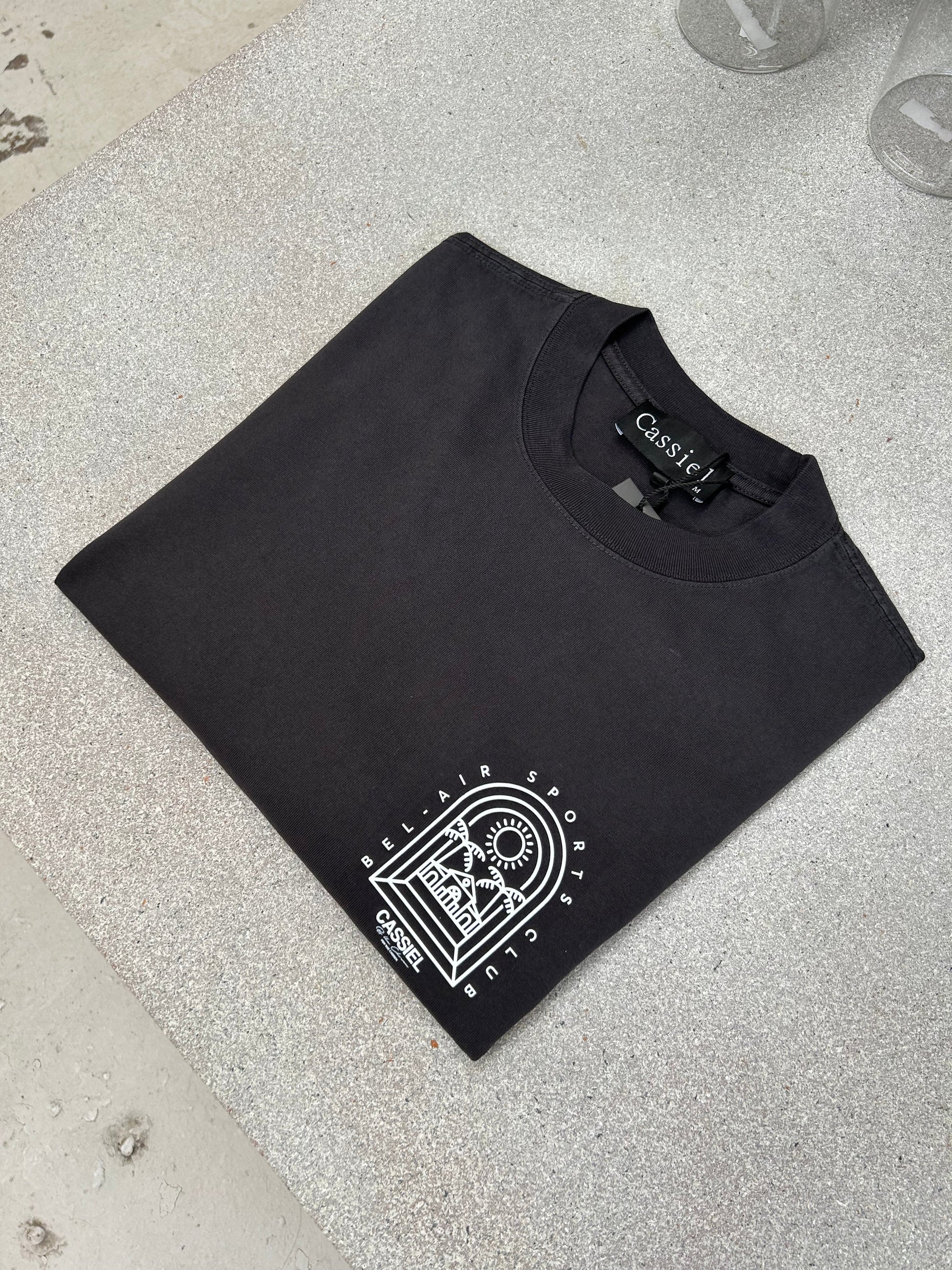Cassiel Bel Air Sports Club logo tee made from a heavyweight cotton and finished in faded black.