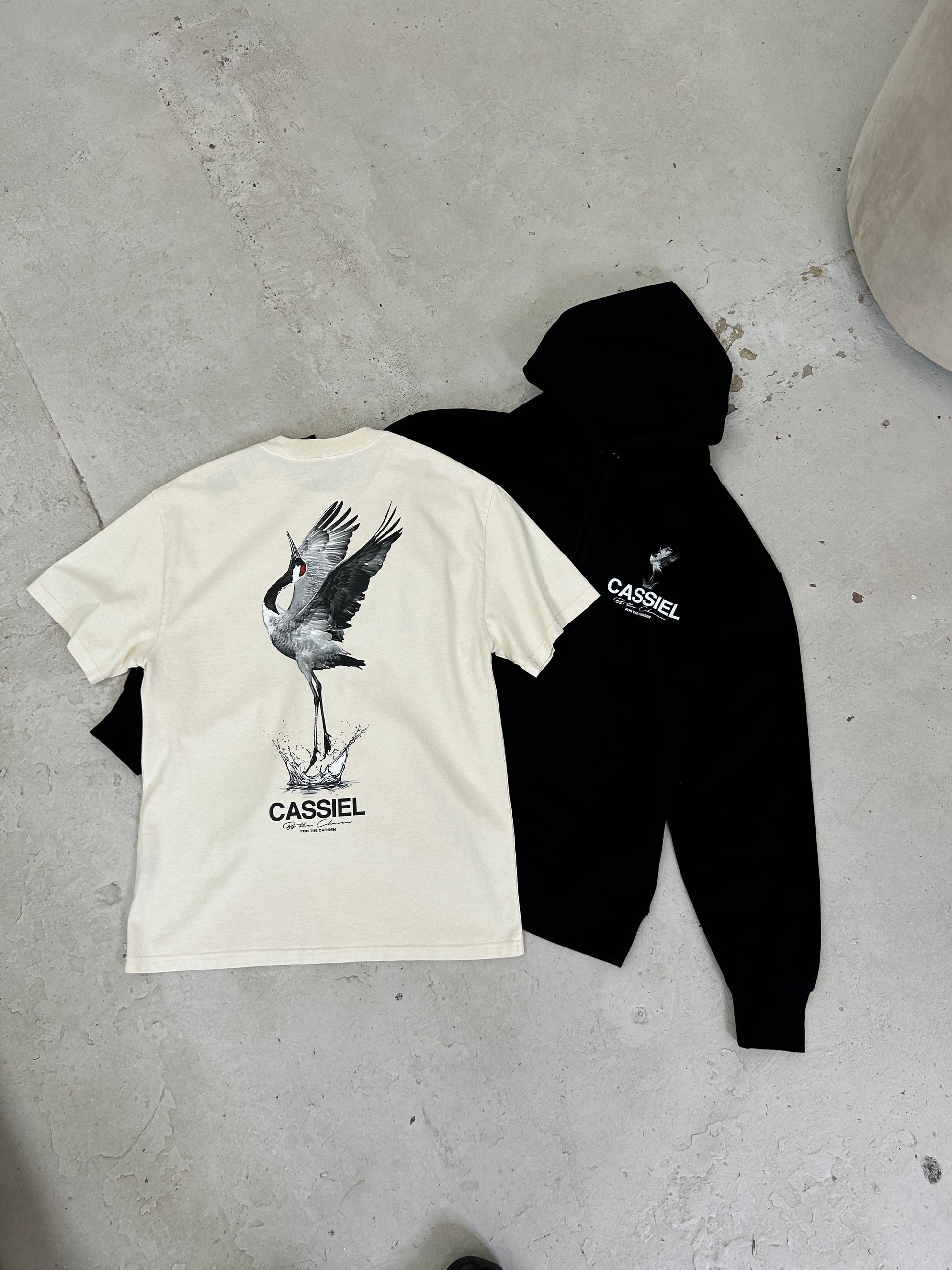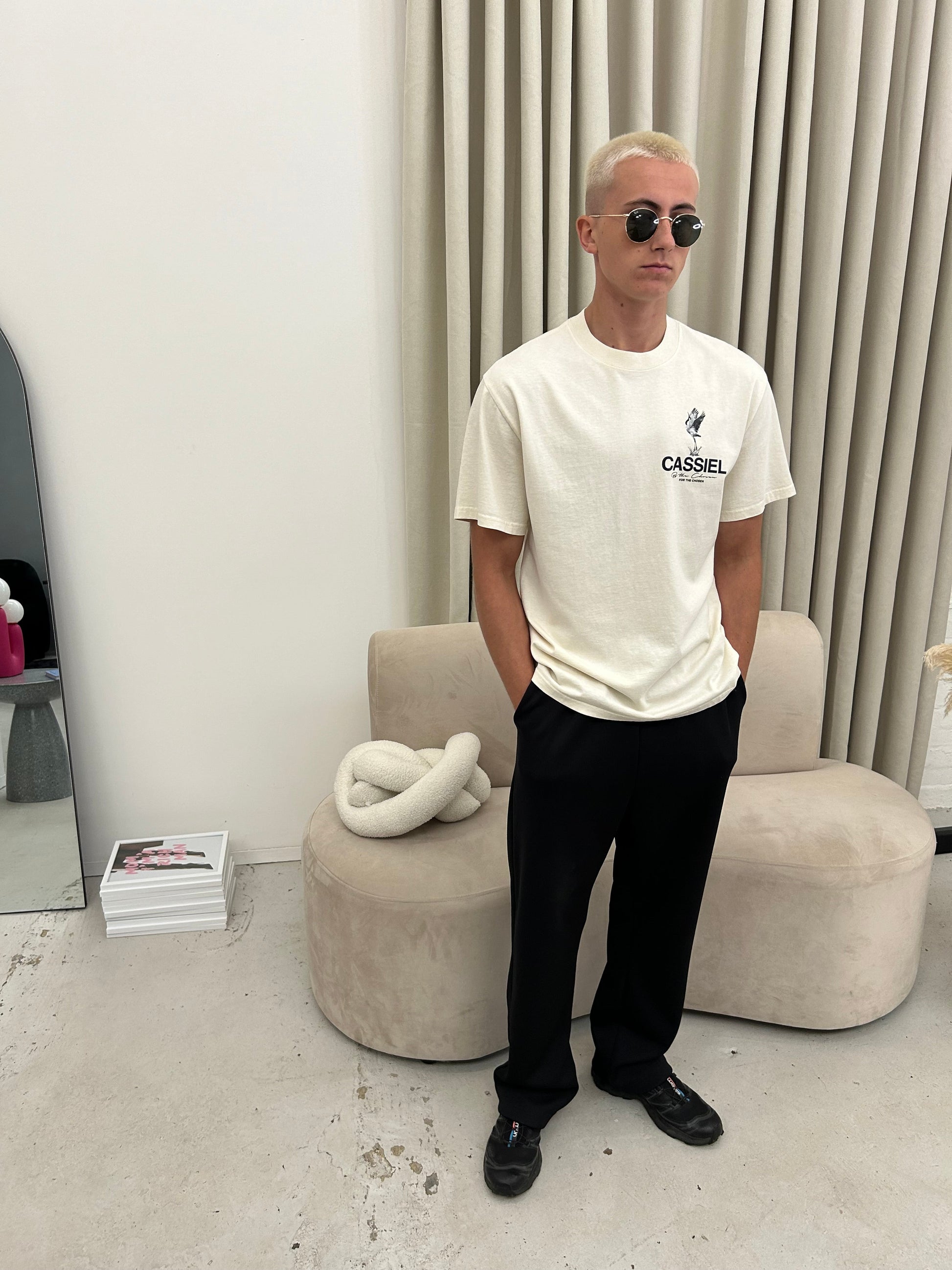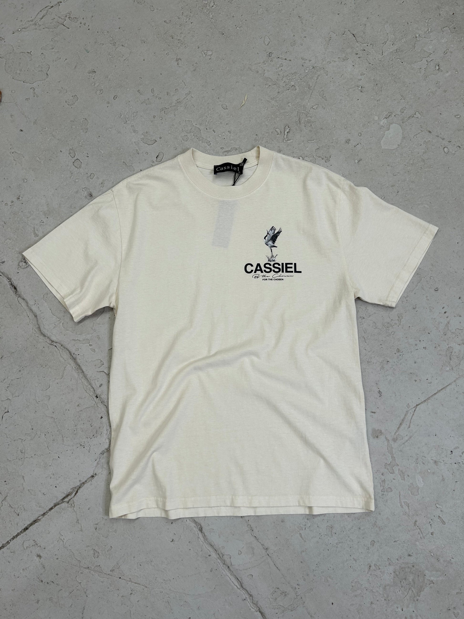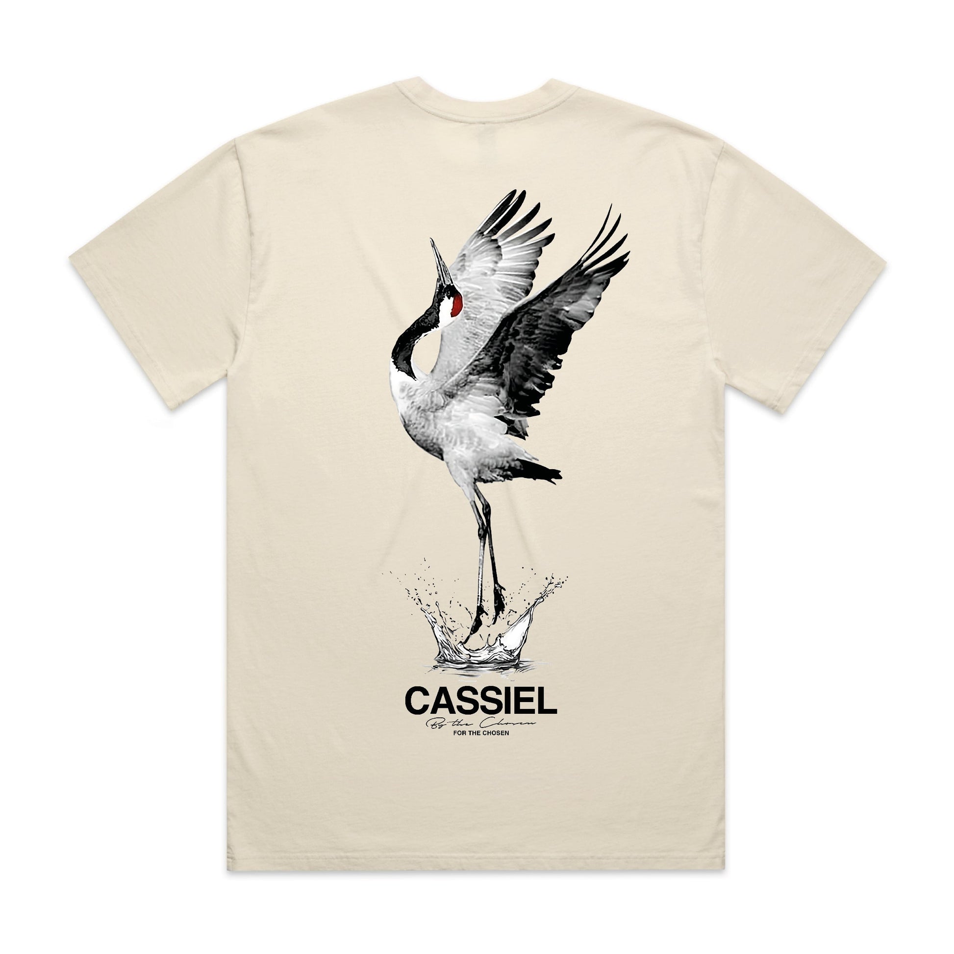 Cassiel Crane logo tee made from cotton and finished in faded ecru.