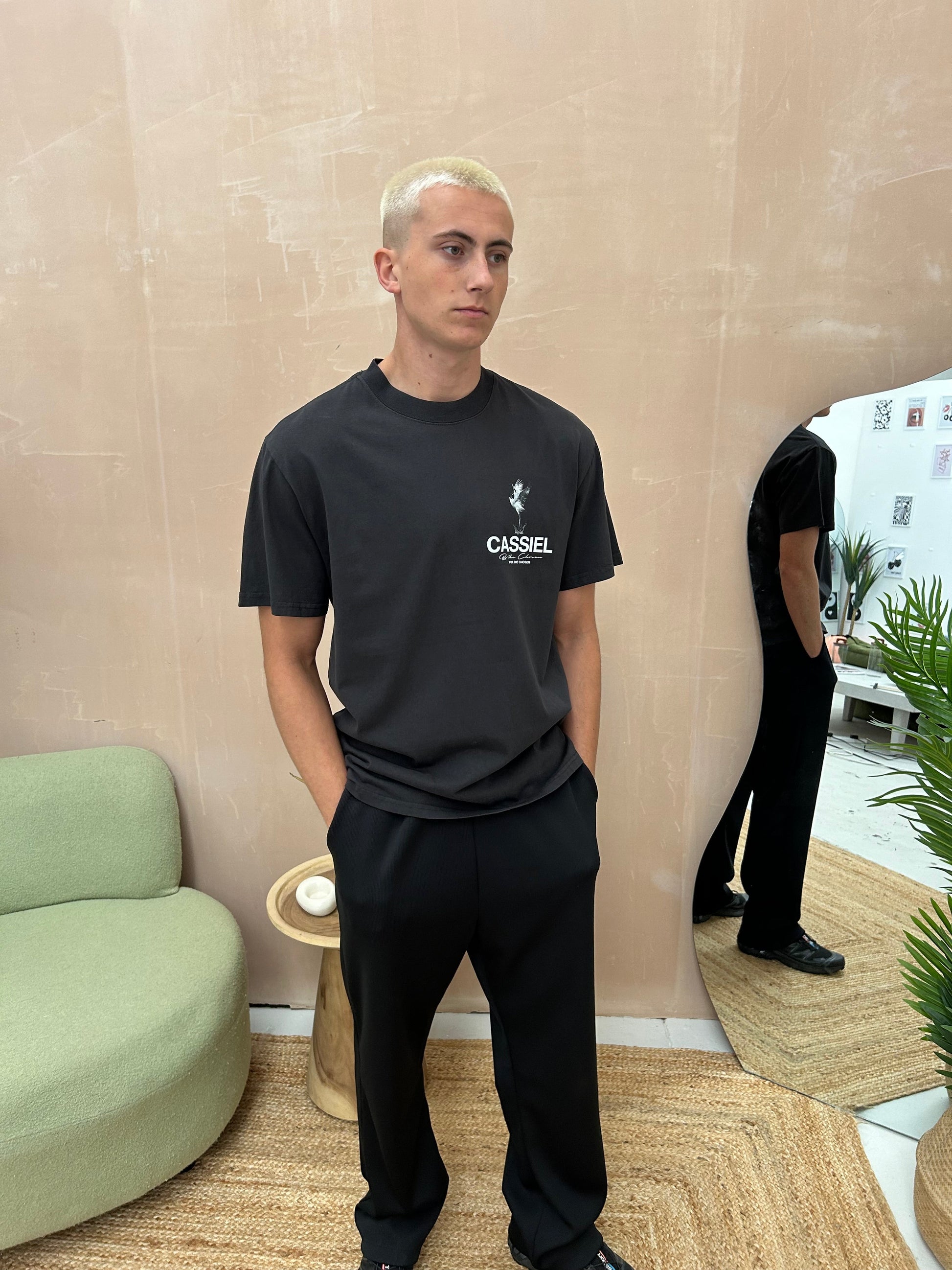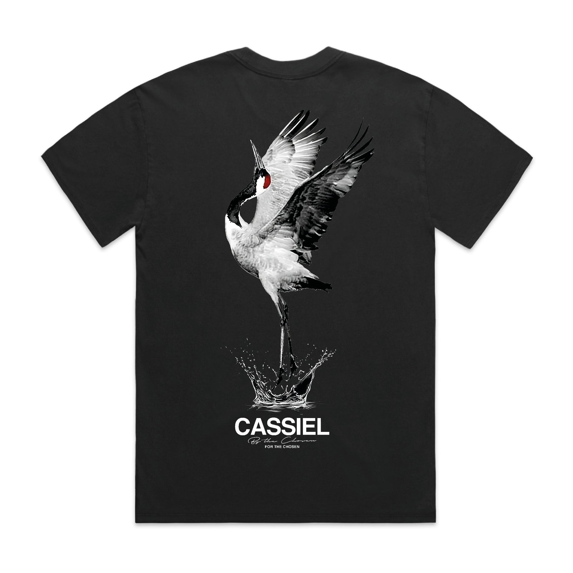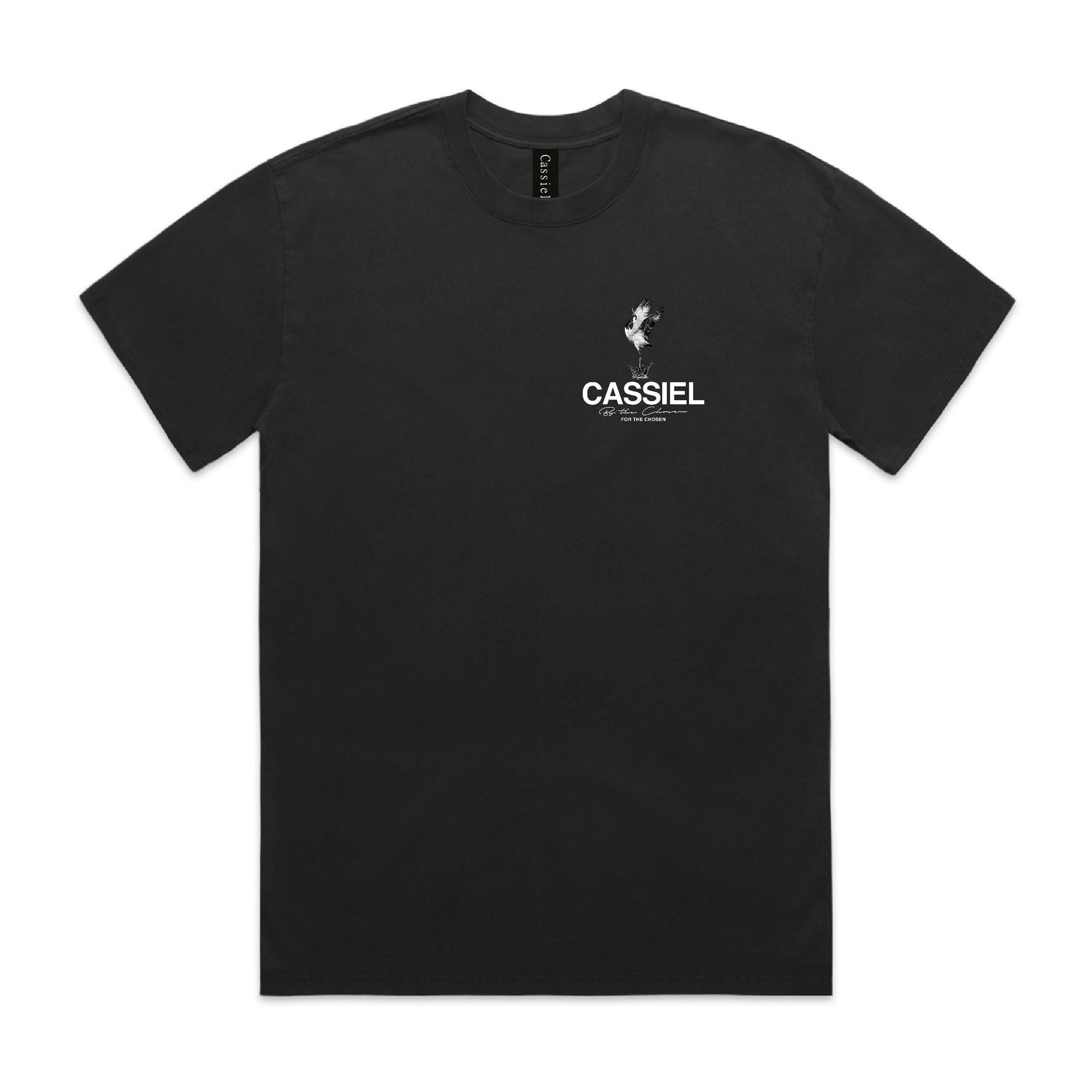 Cassiel Crane logo tee made from cotton and finished in faded black