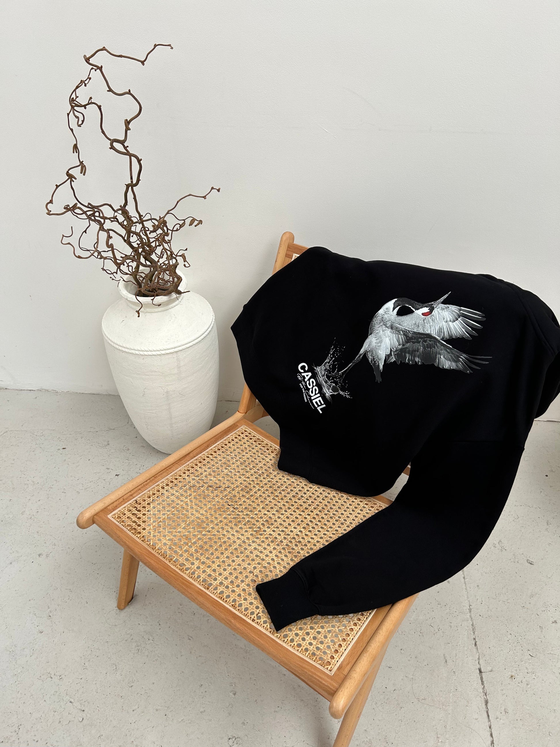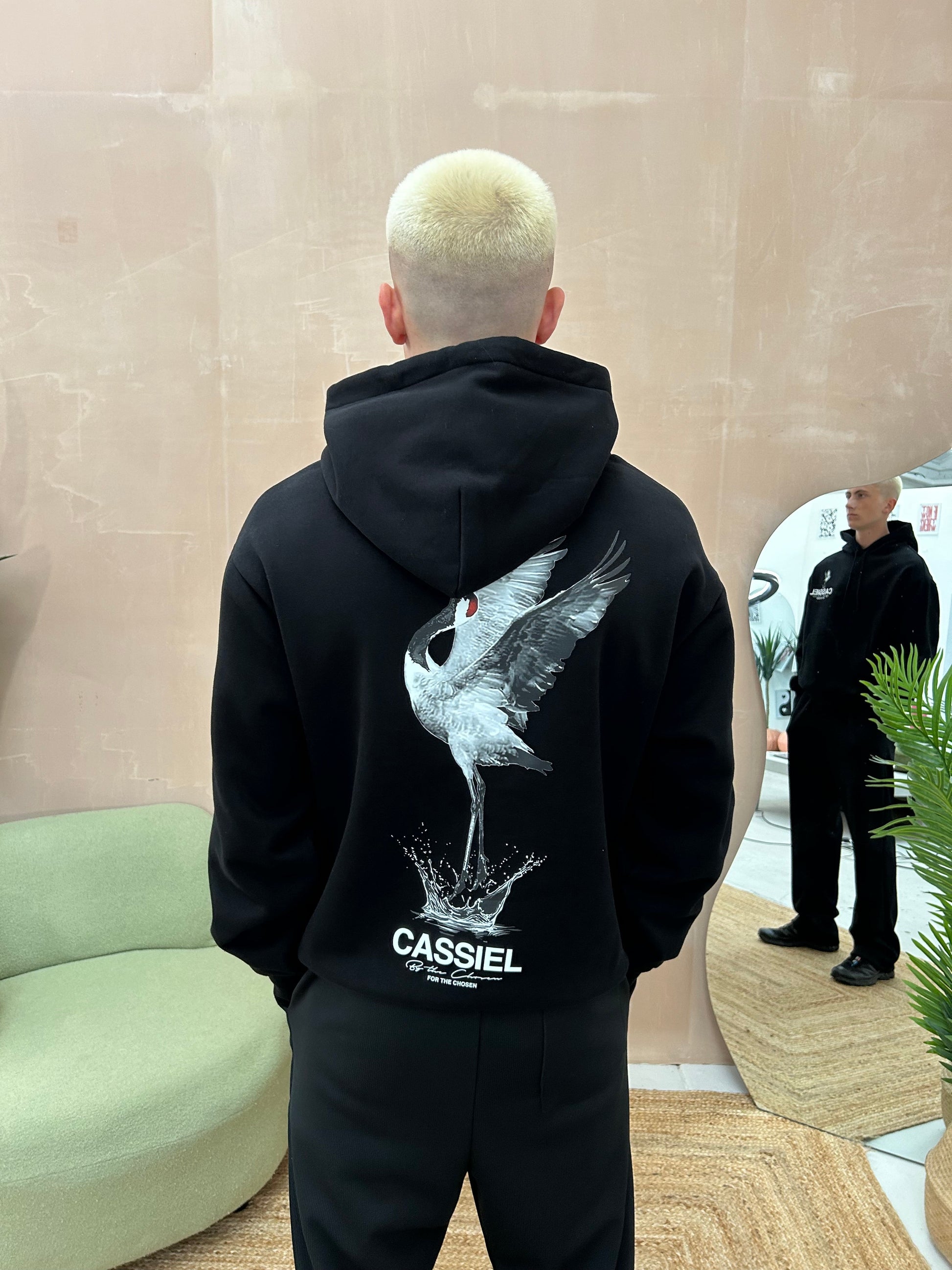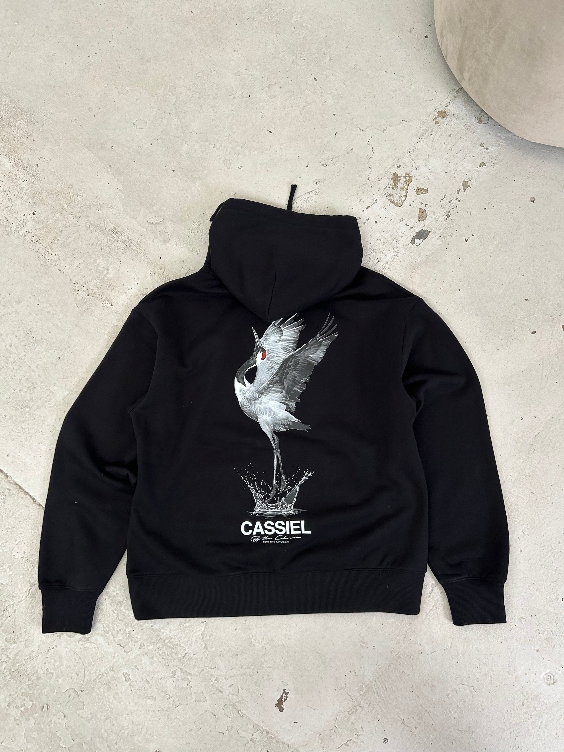 Cassiel Crane pullover hooded sweatshirt made of a cotton mix and finished in Black.