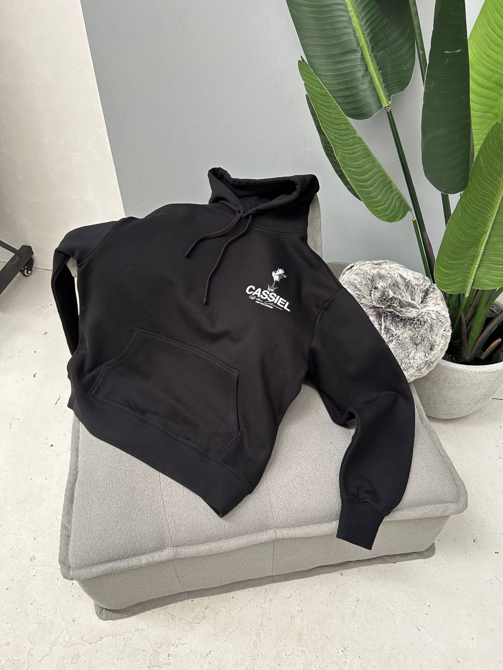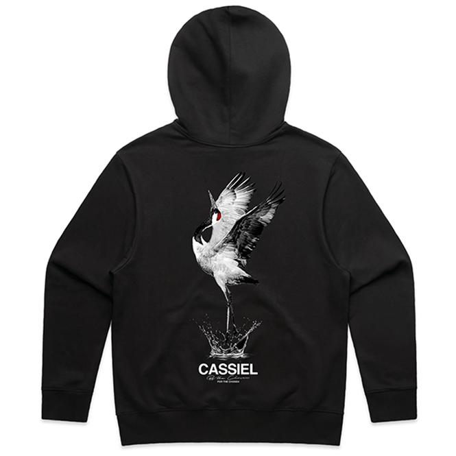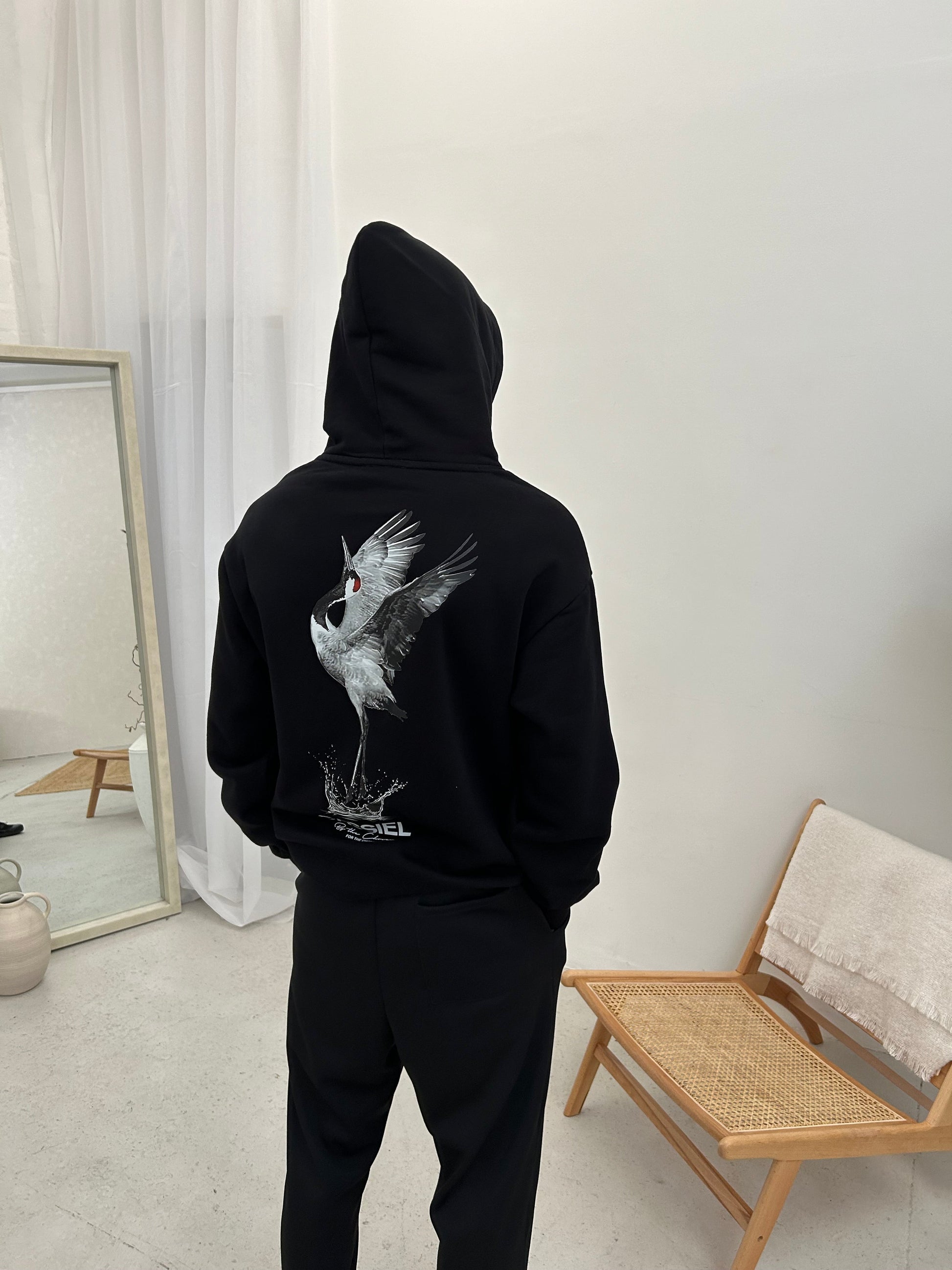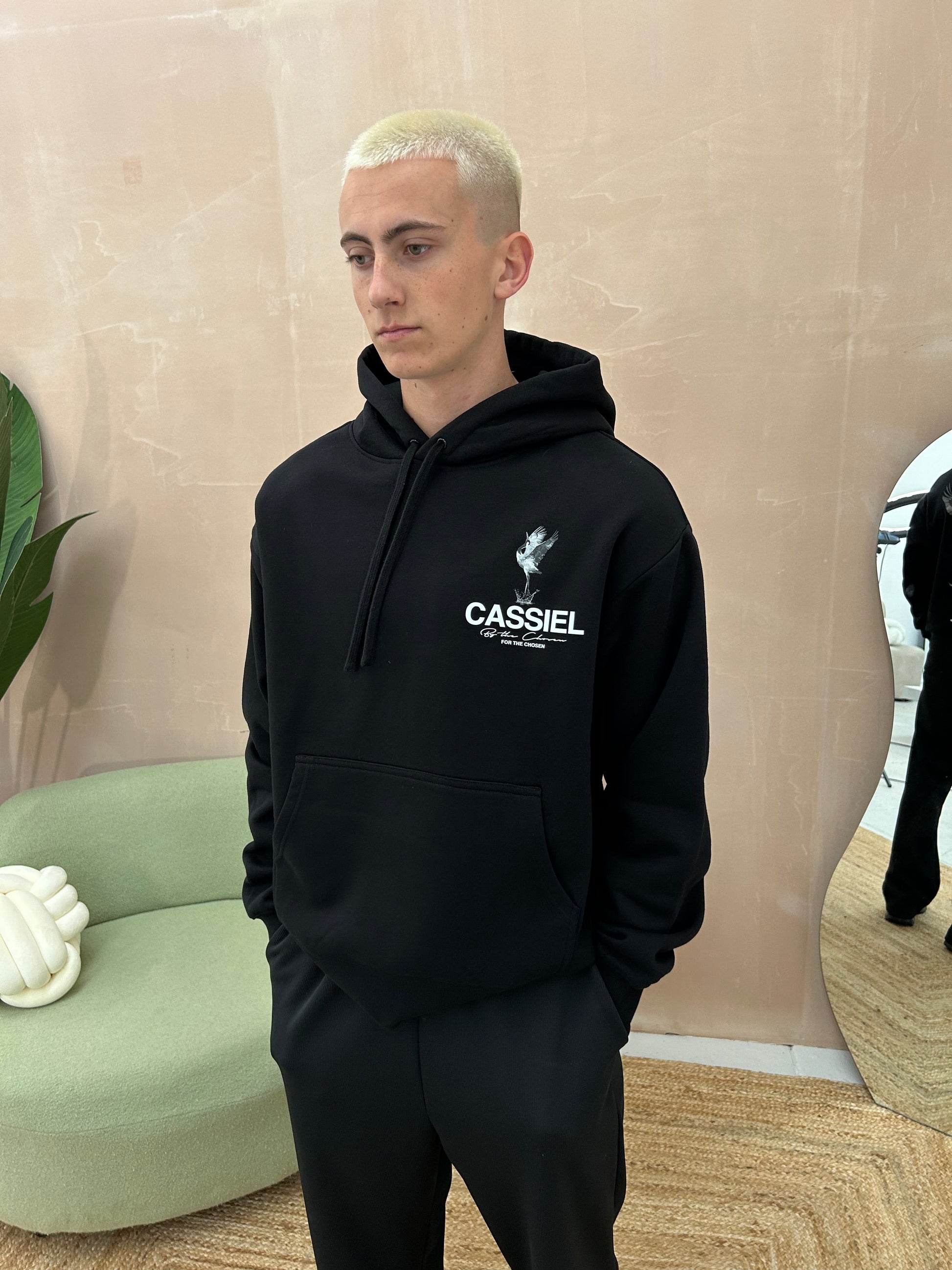 Cassiel Crane pullover hooded sweatshirt made of a cotton mix and finished in Black.