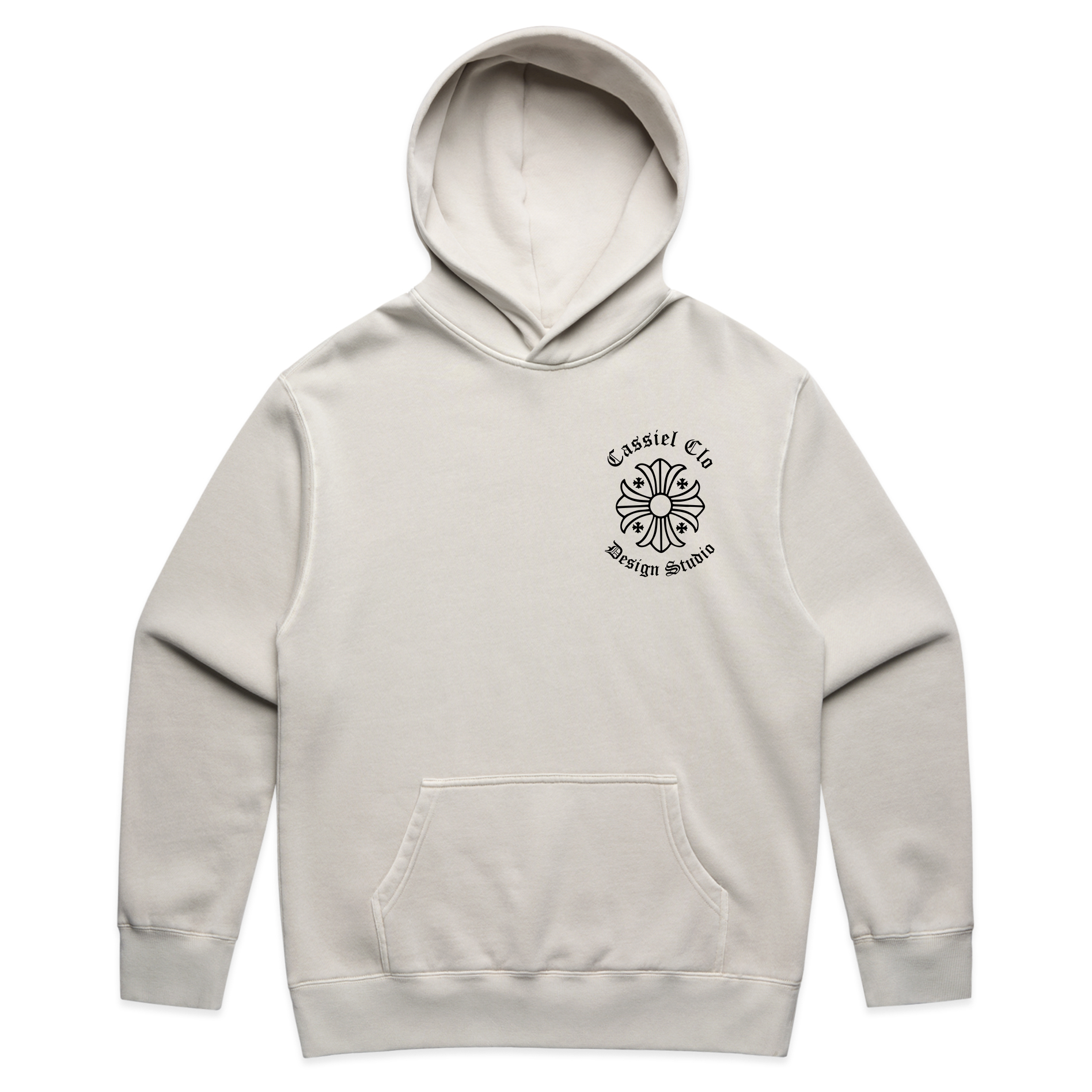 Cassiel Cross pullover hooded sweatshirt made of a cotton mix and finished in faded bone.
