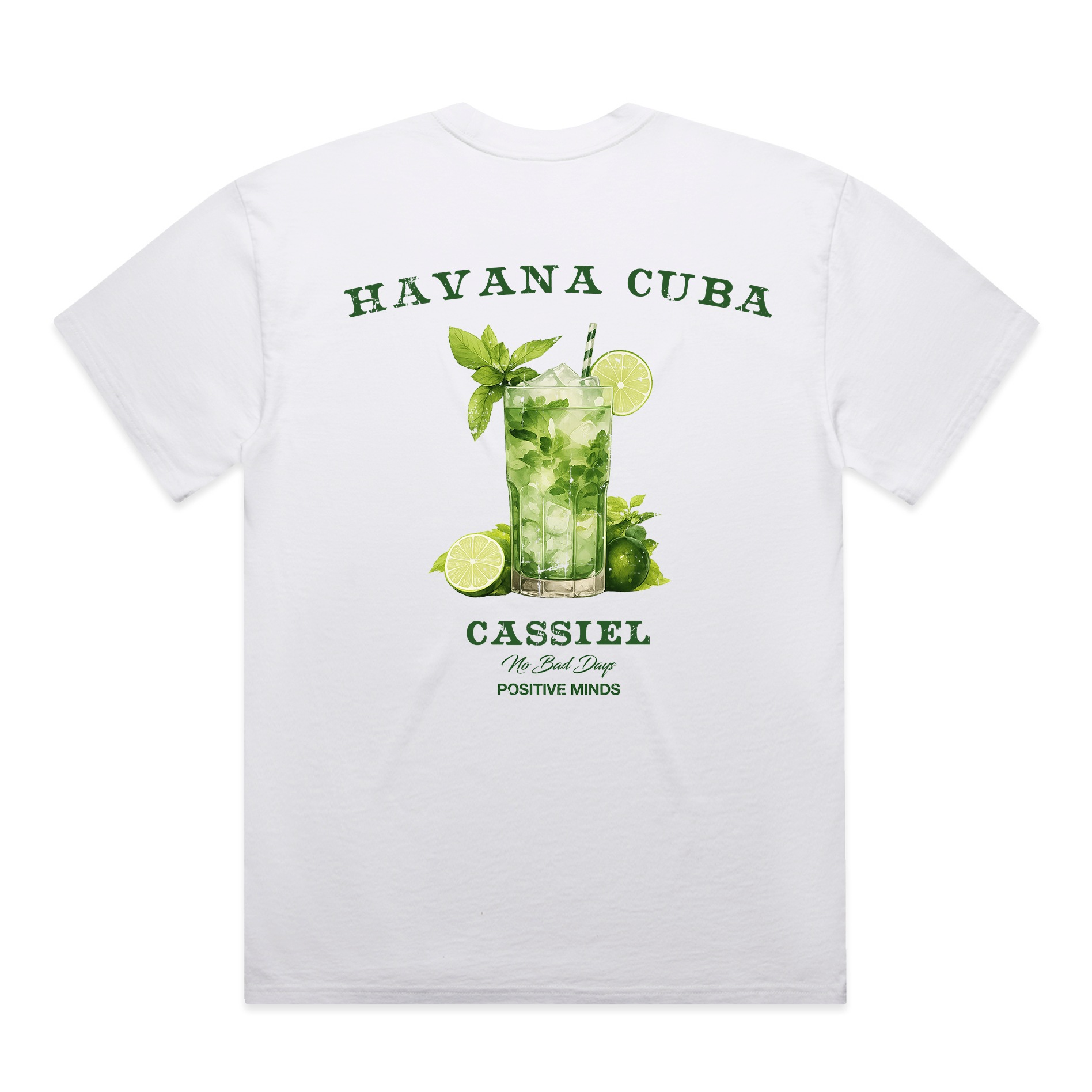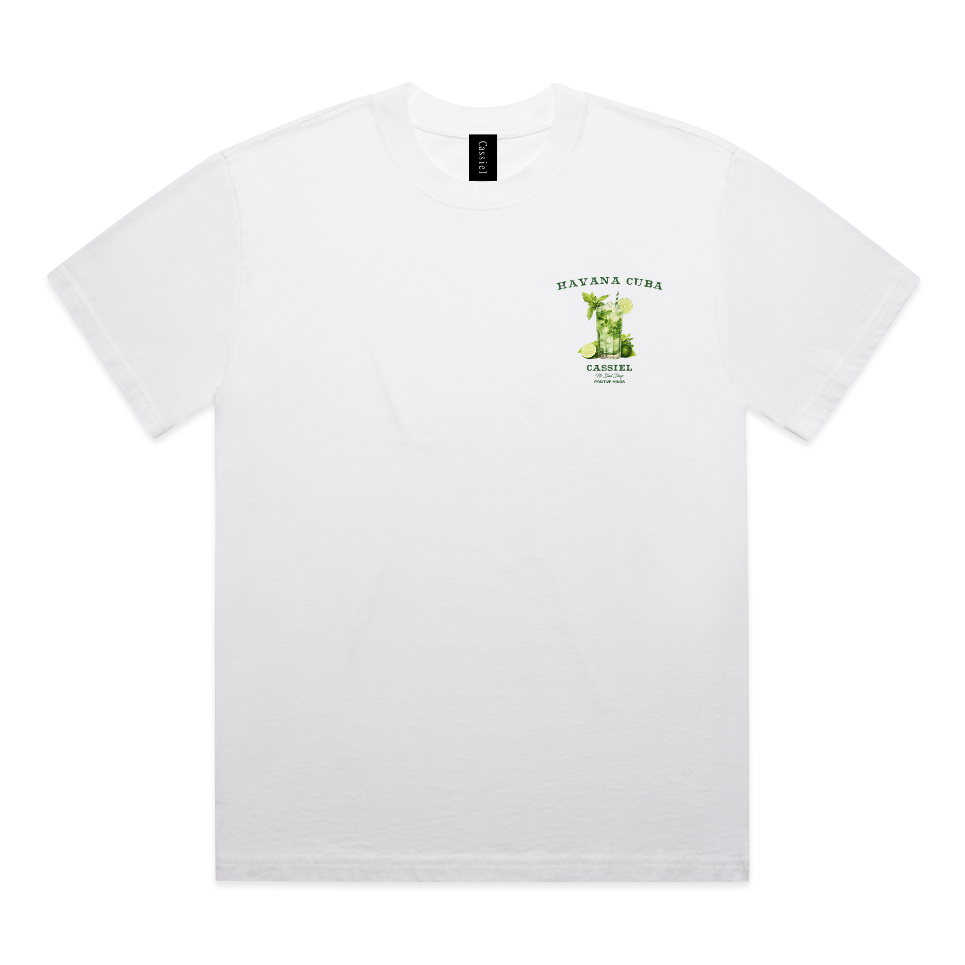 Cassiel Cuba tee made from cotton and finished in faded white.