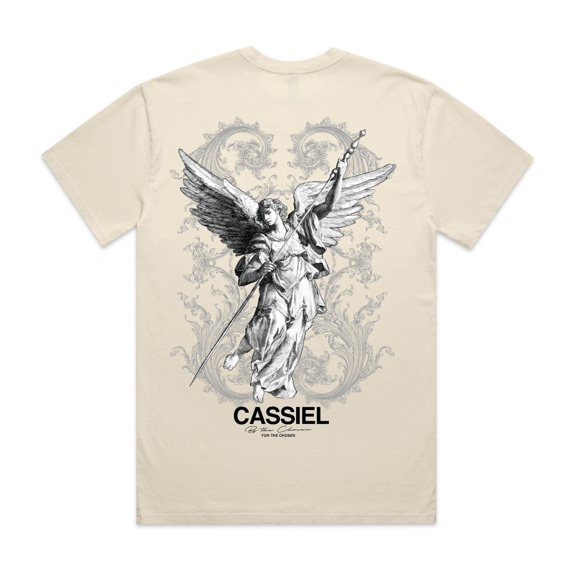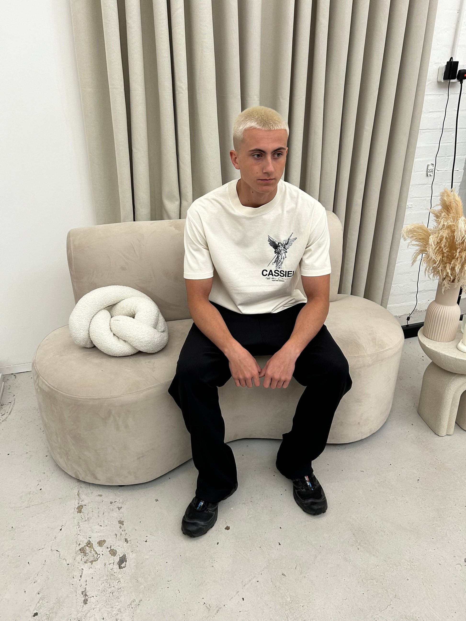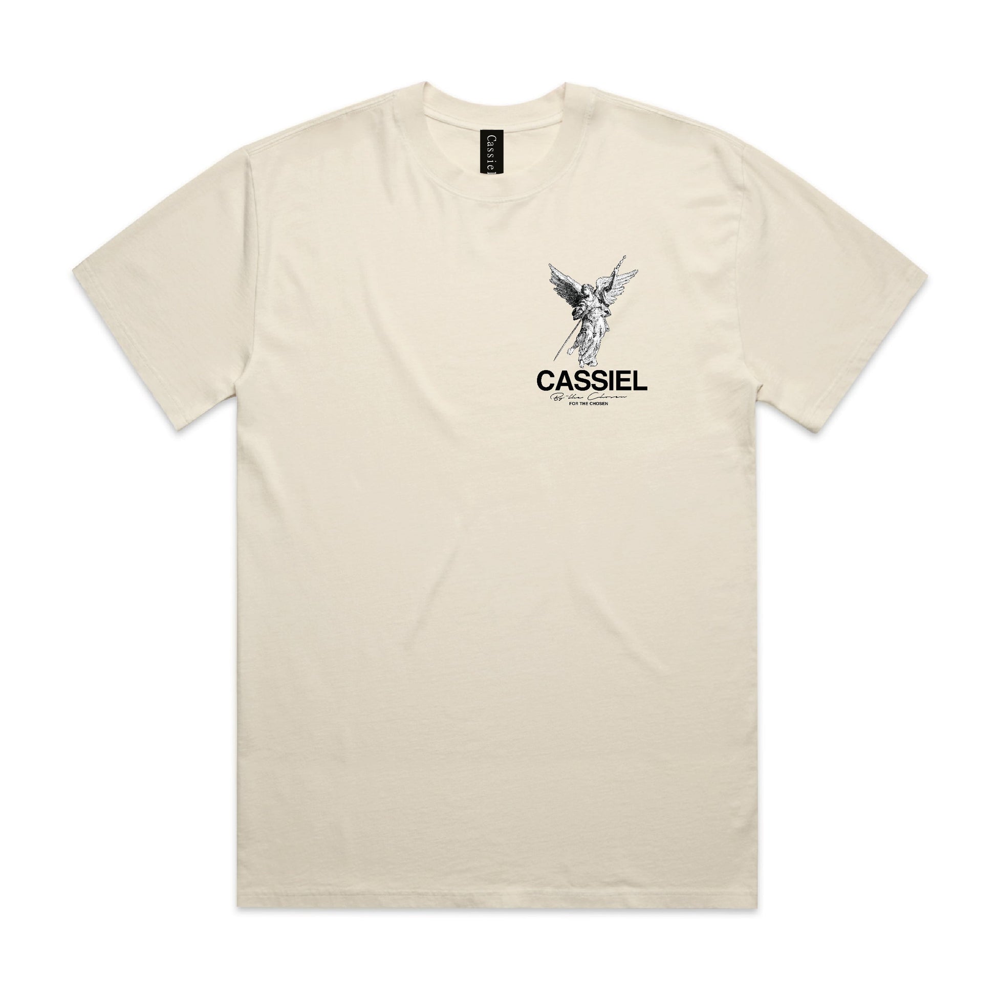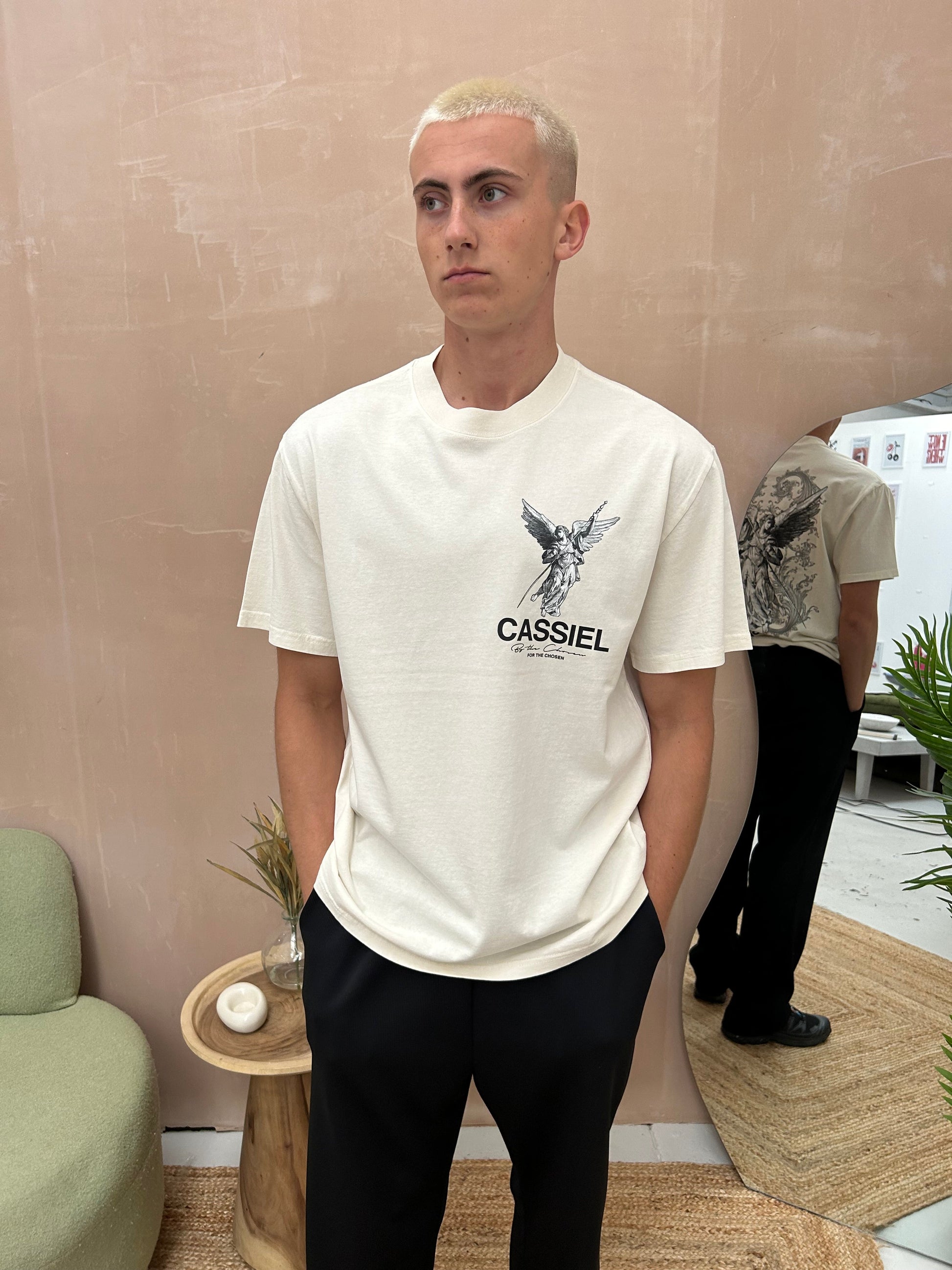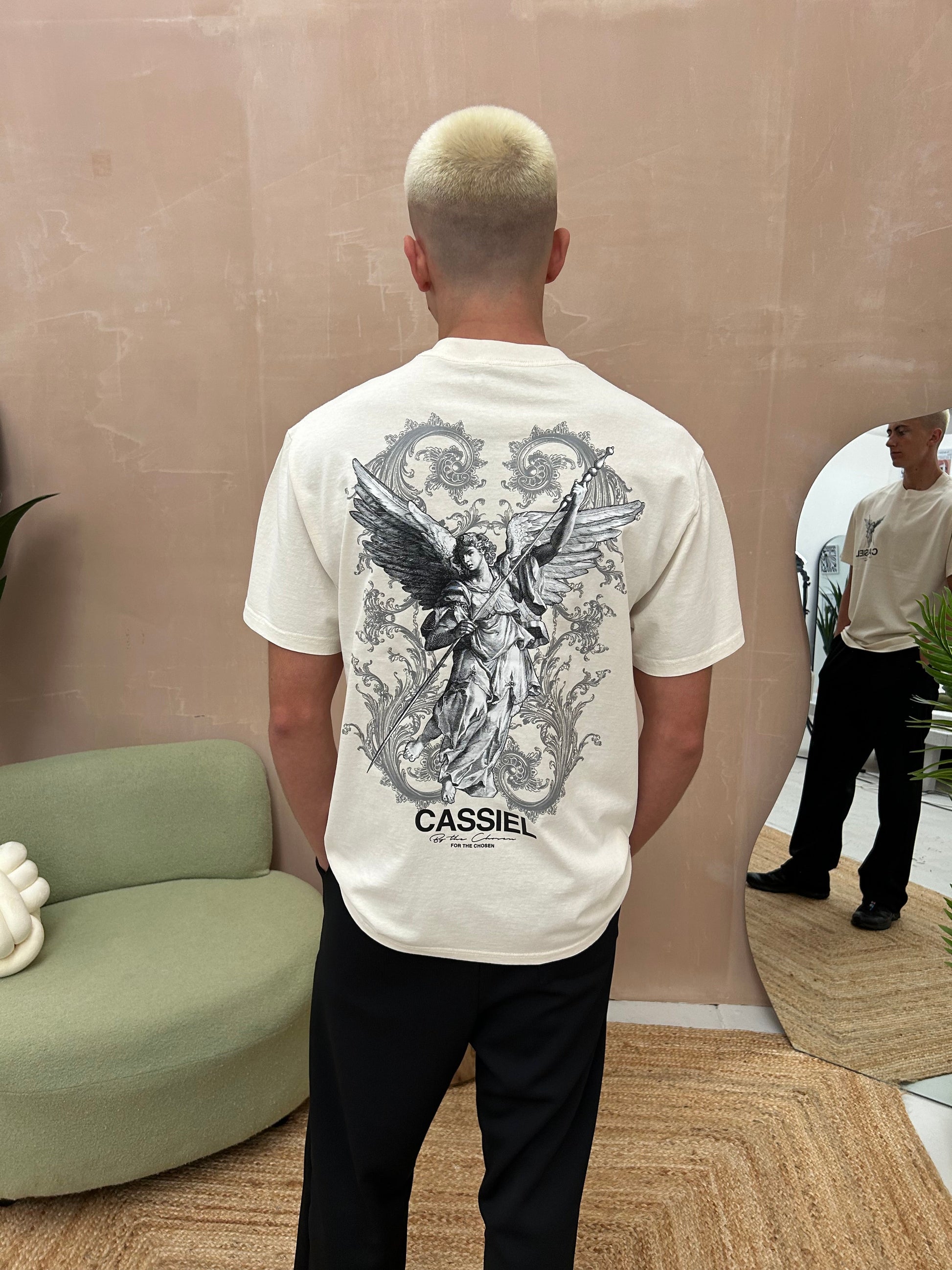 Cassiel Fleur De Lis Angel logo tee made from cotton and finished in ecru.