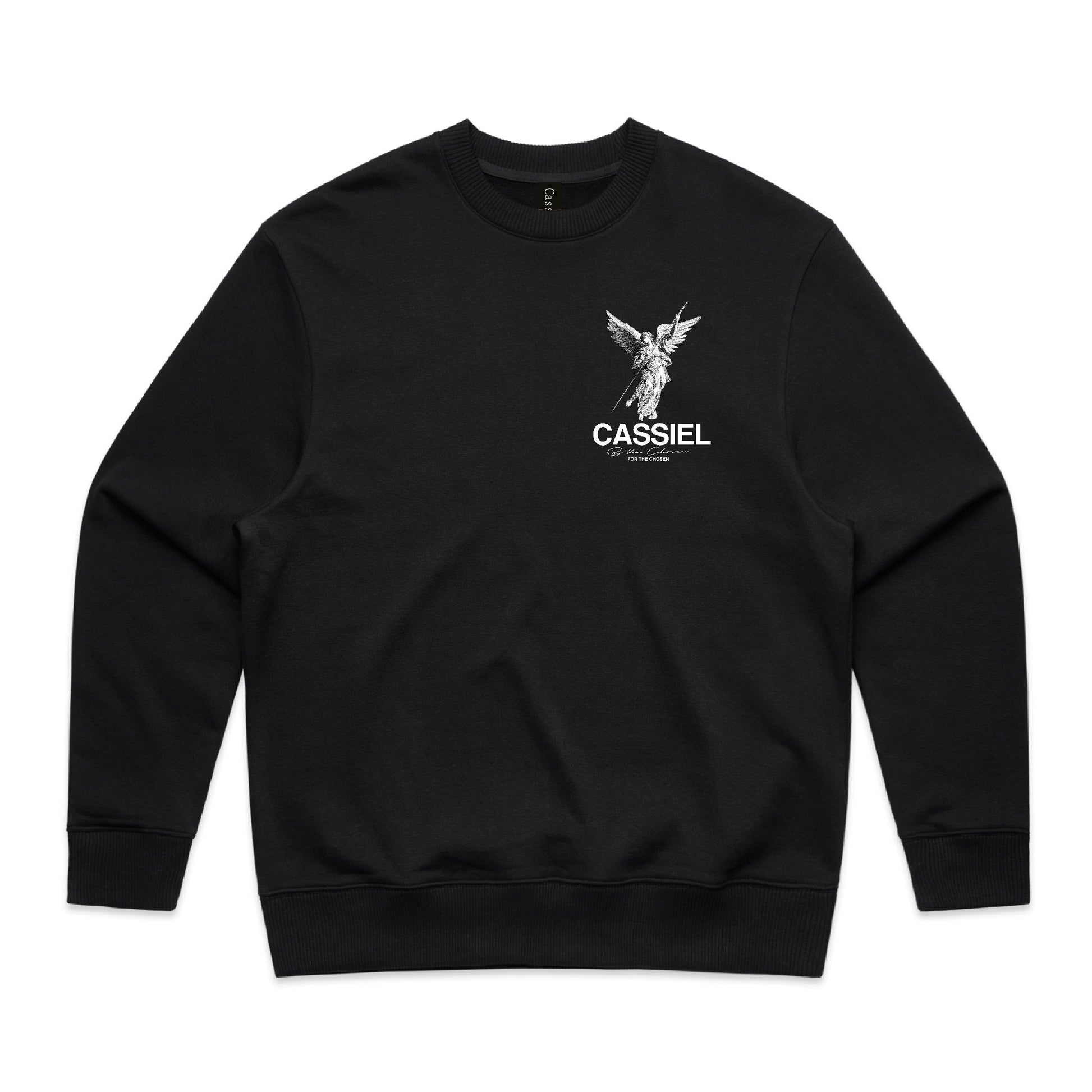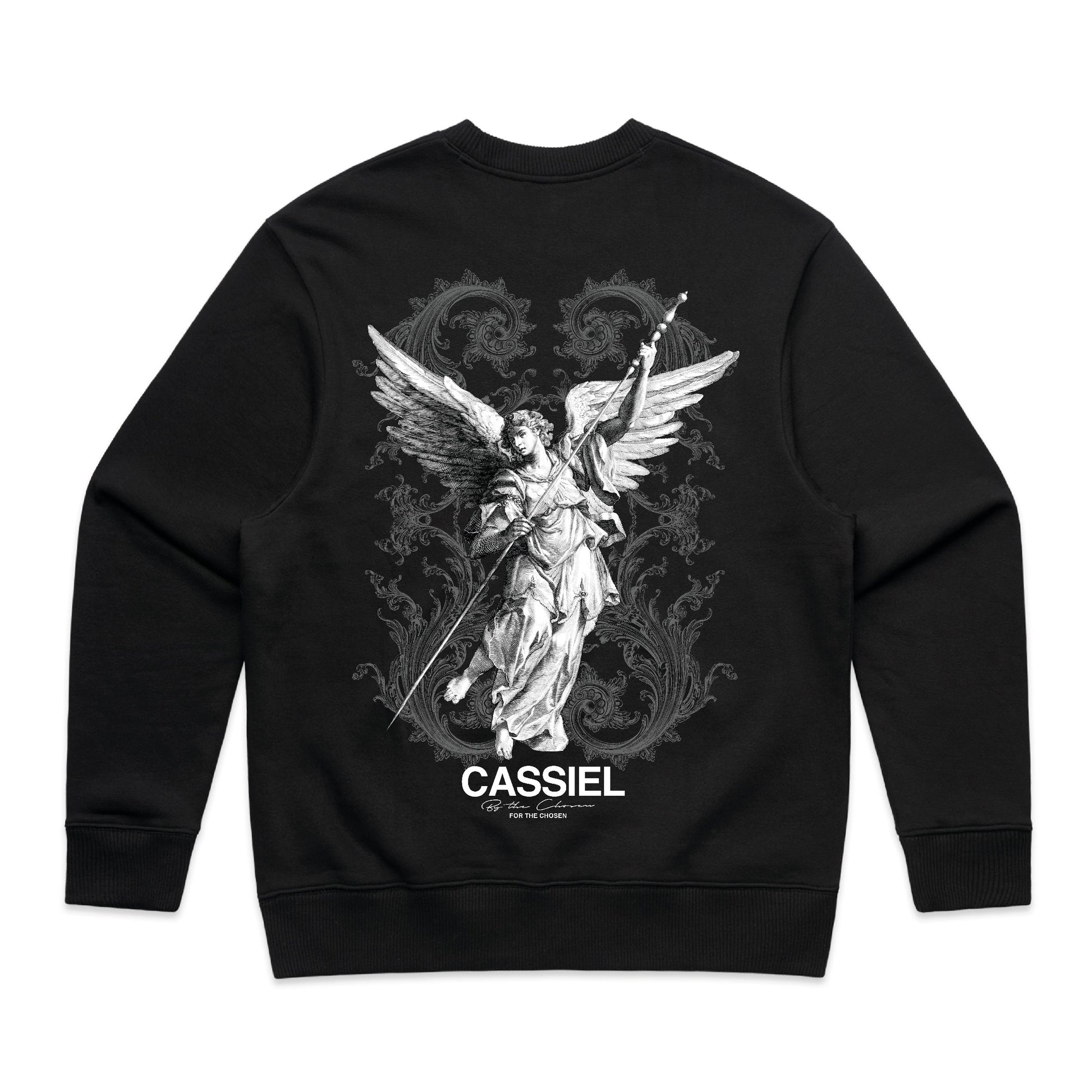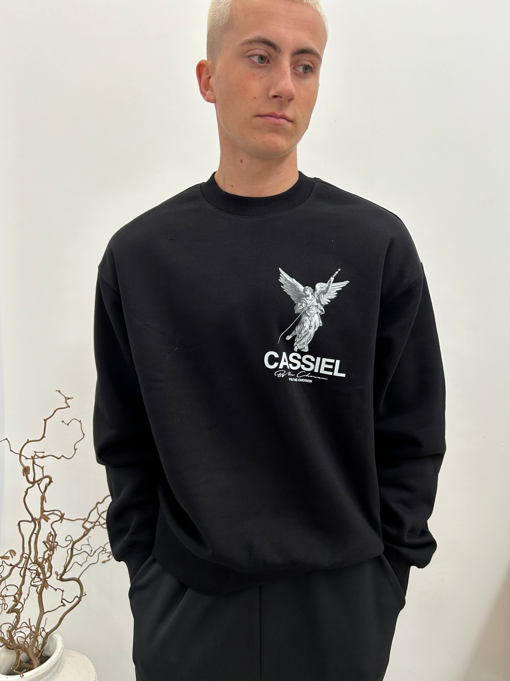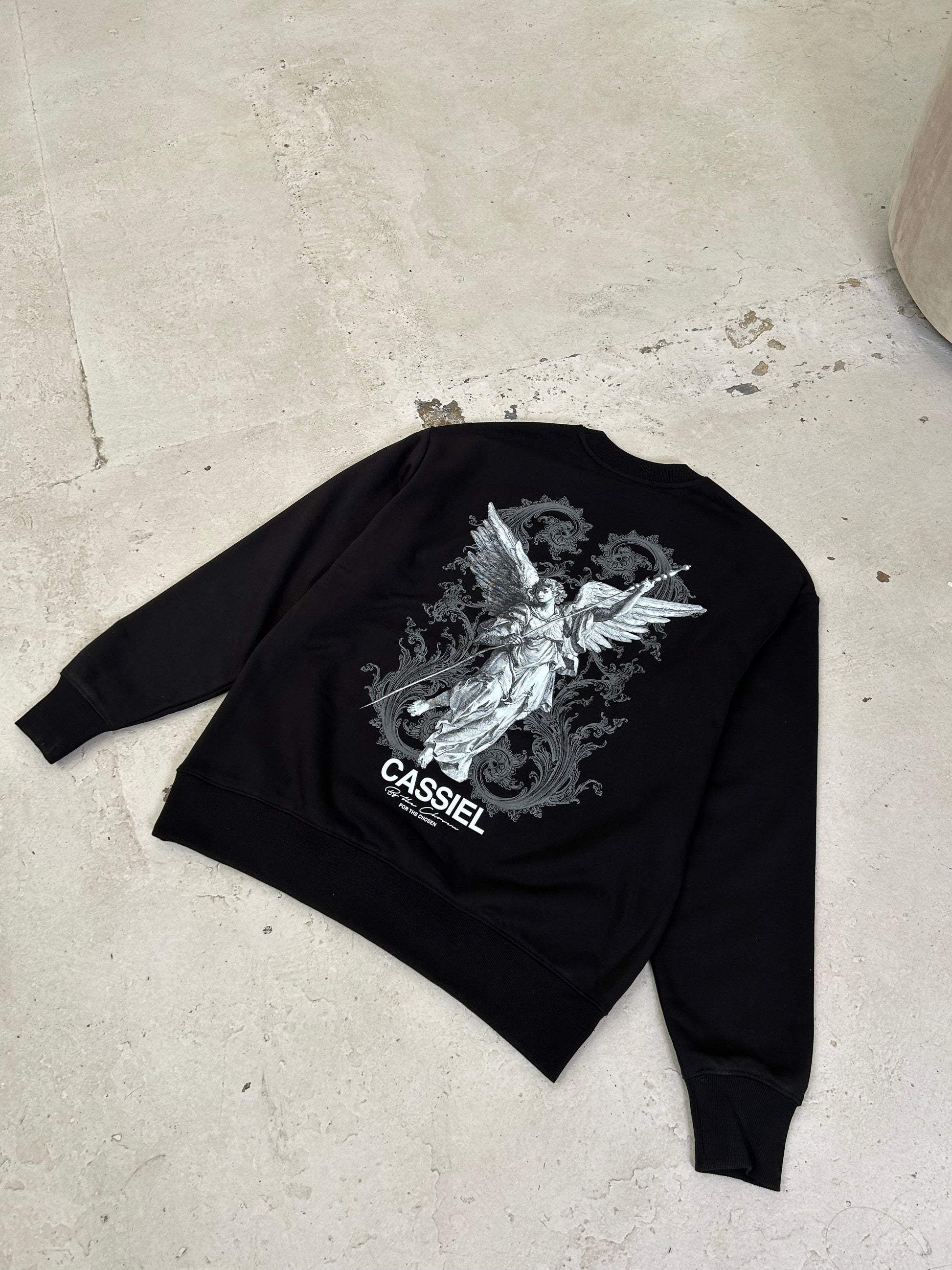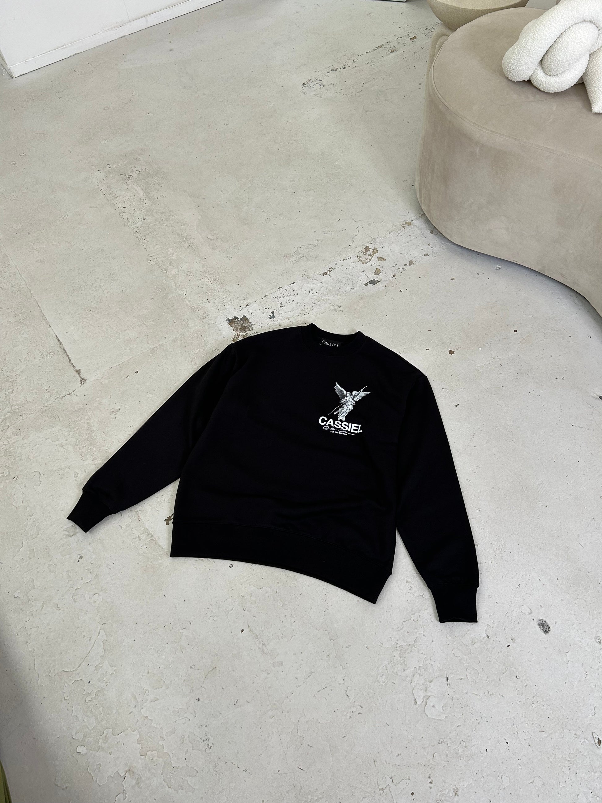 Cassiel Fleur De Lis Angel logo sweatshirt made from a cotton mix and finished in black.