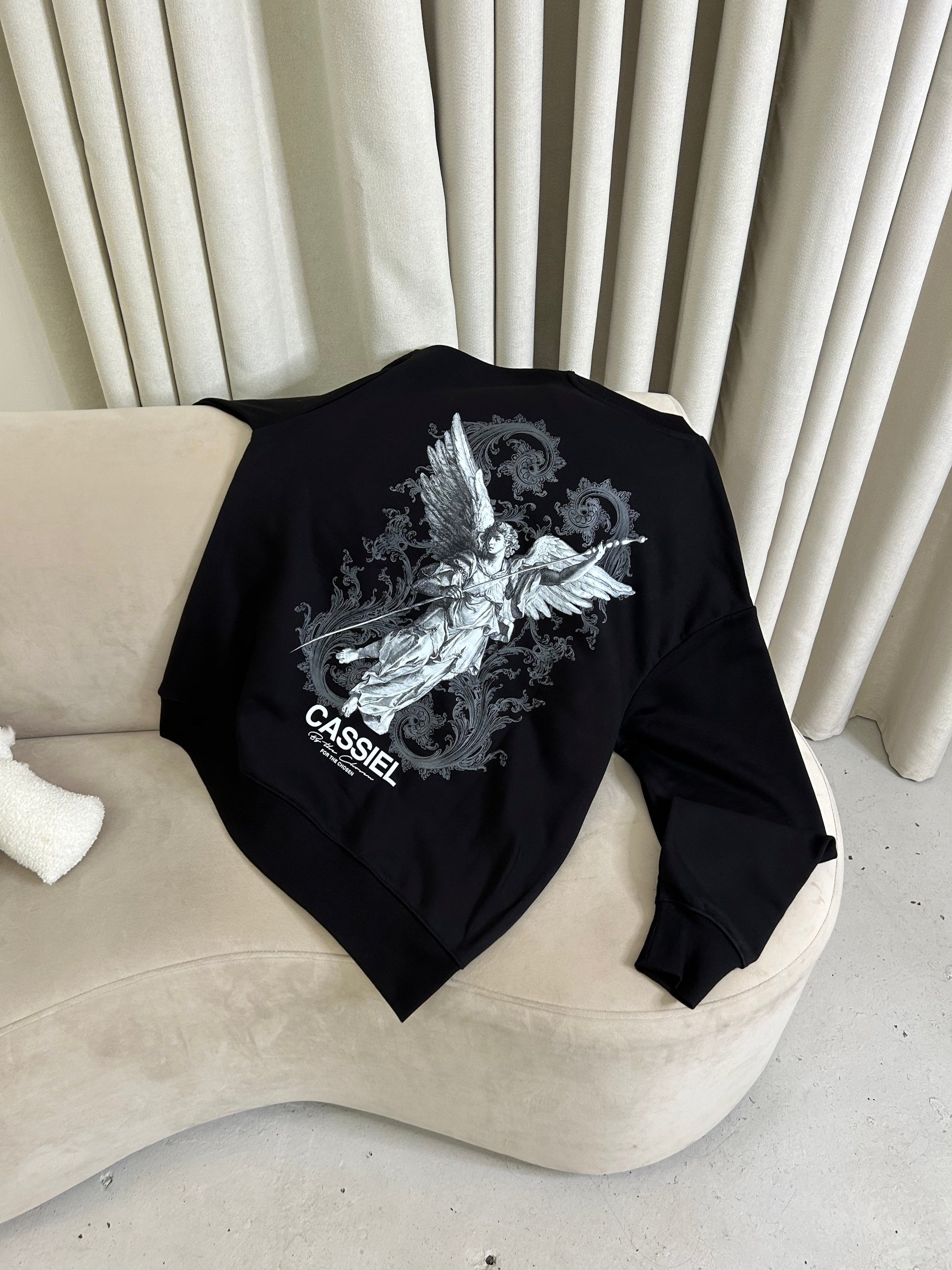 Cassiel Fleur De Lis De Angel Back Print Black Sweatshirt