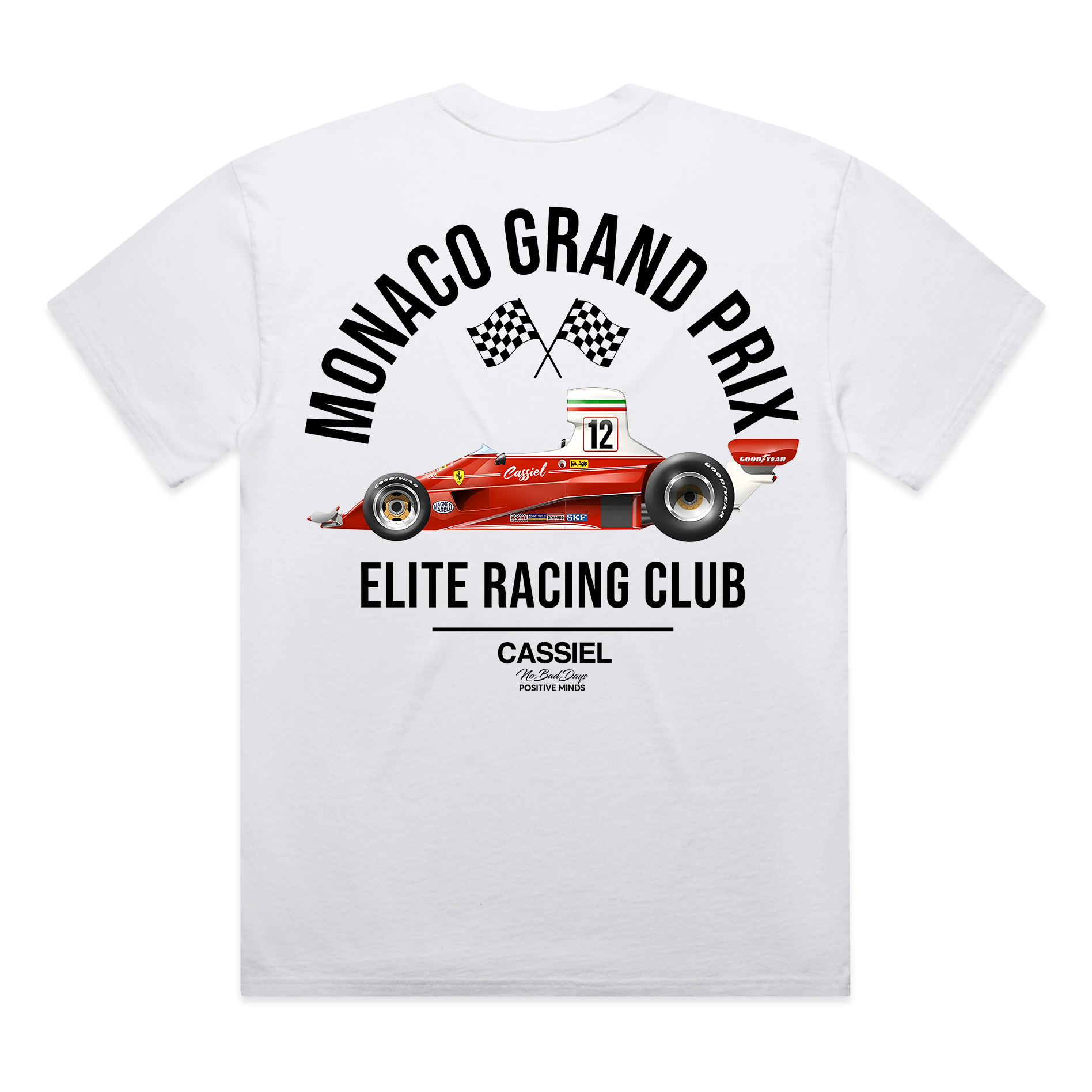Cassiel Monaco Grand Prix tee made from cotton and finished in faded white.