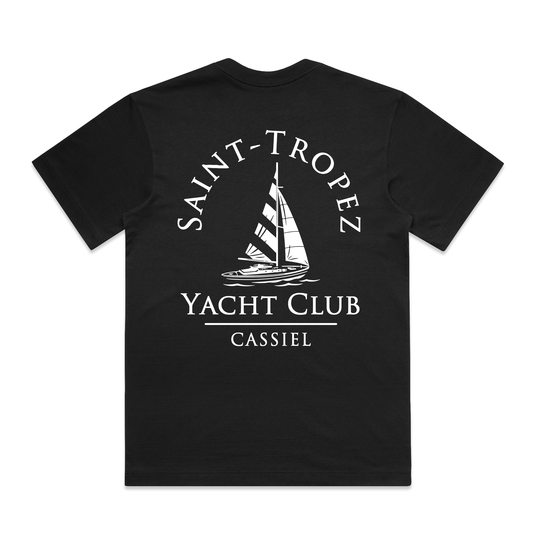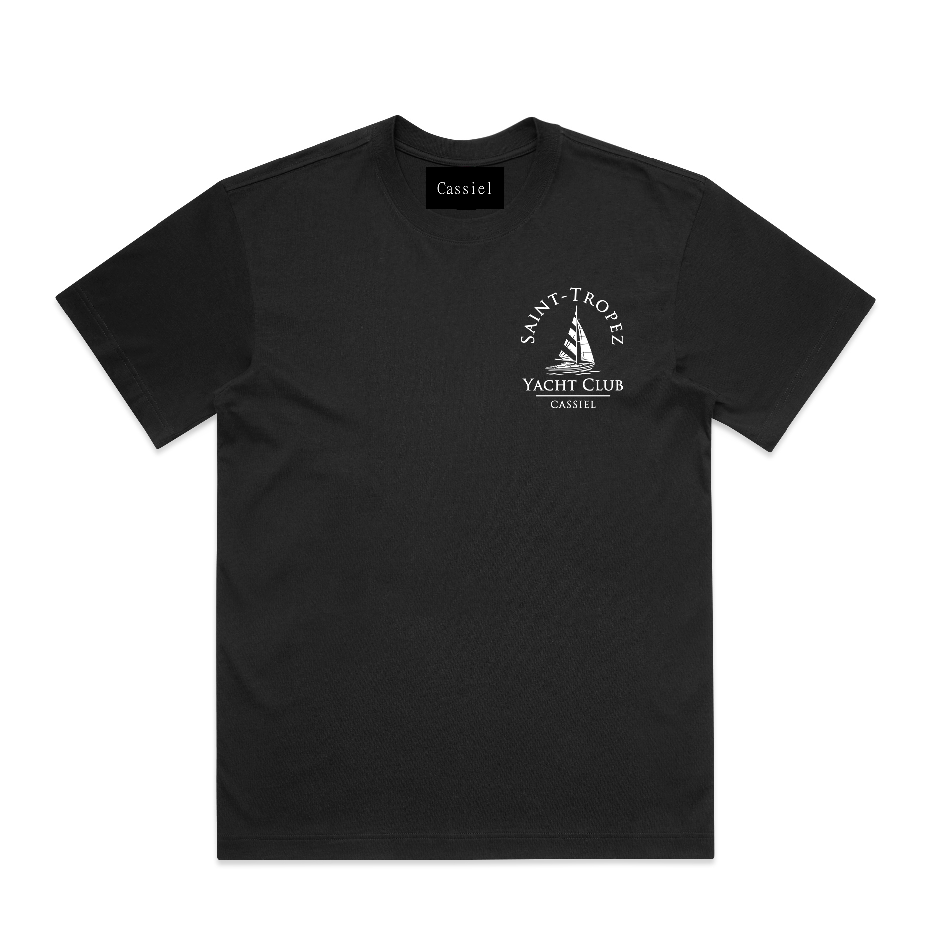 Cassiel Saint Tropez Yacht Box tee made from cotton and finished in black.