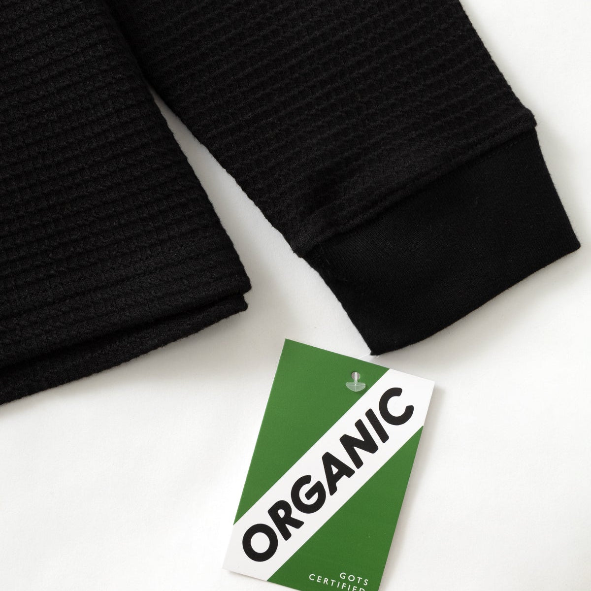 Power Goods long sleeve thermal waffle tee made from a cotton and finished in black.