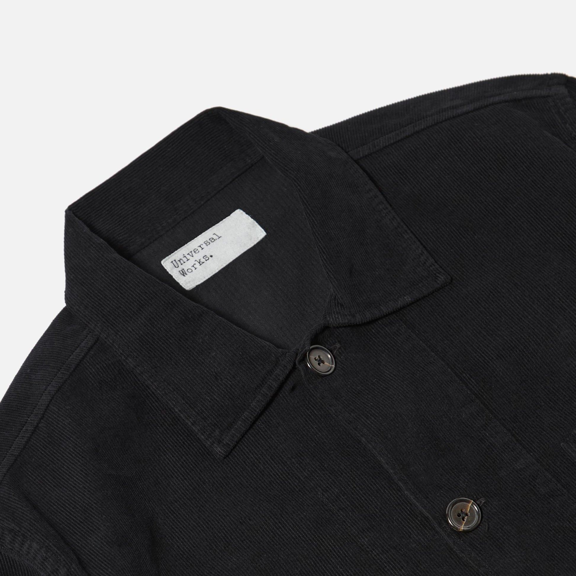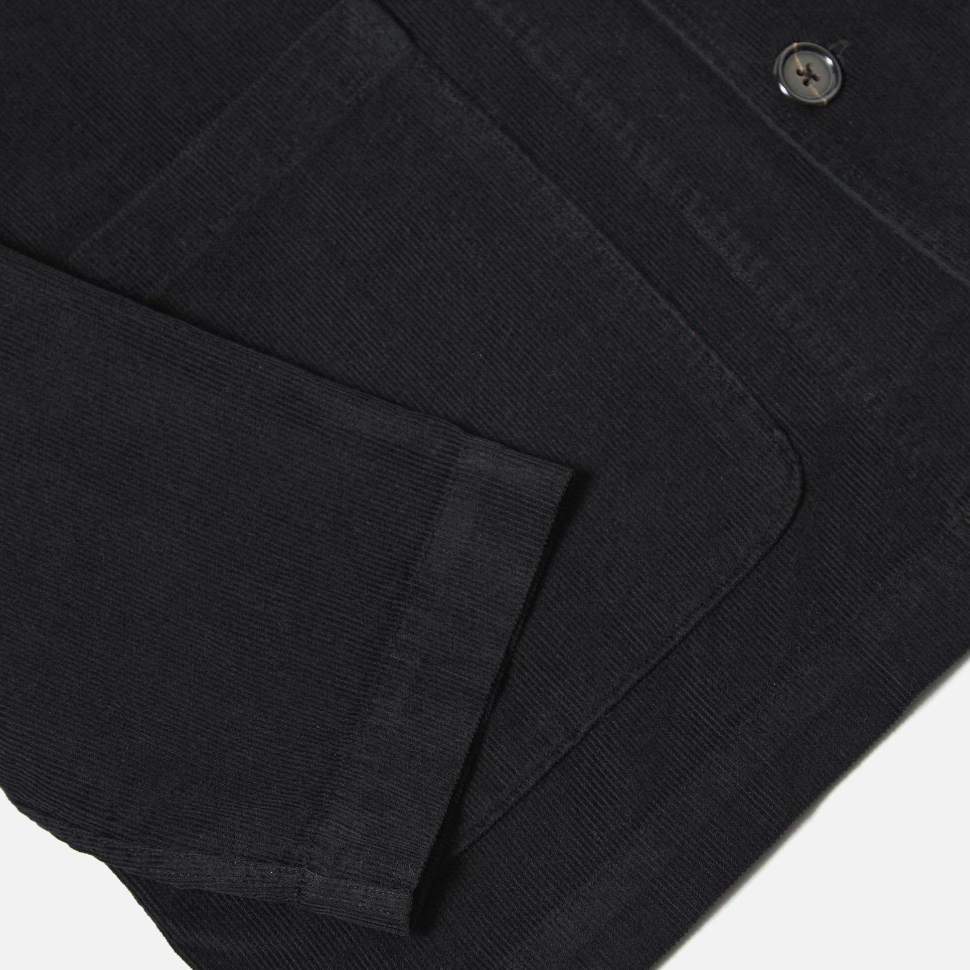 Universal Works Bakers fine cord overshirt made from cotton and finished in black.