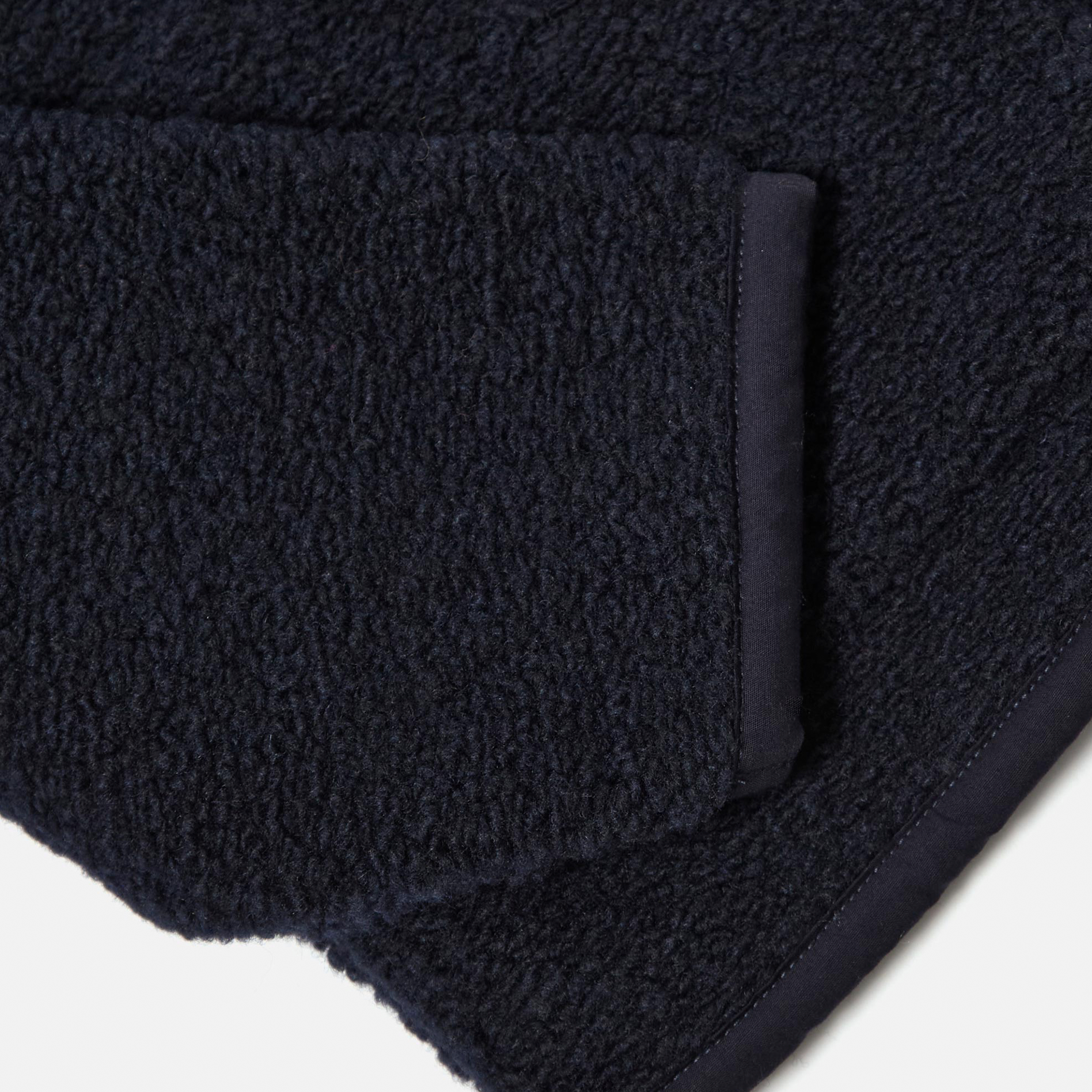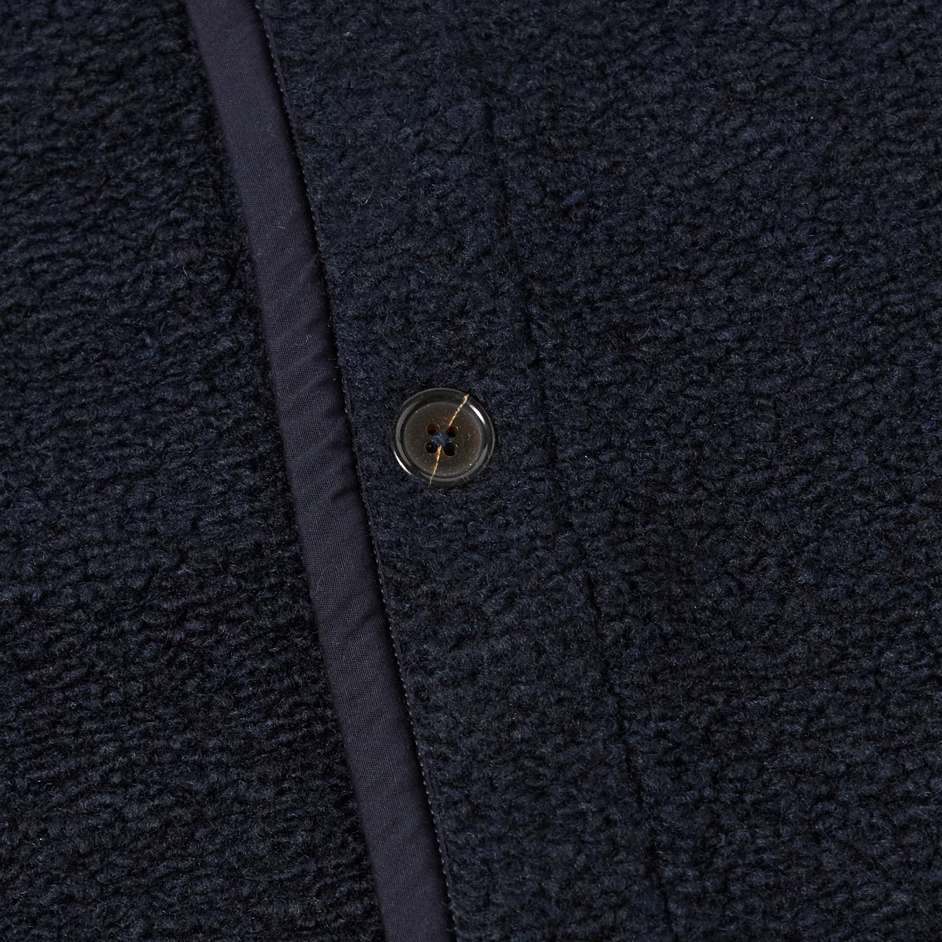 Universal Works Lancaster Alvar Navy Fleece Jacket made from a polyester wool mix and finished in navy.
