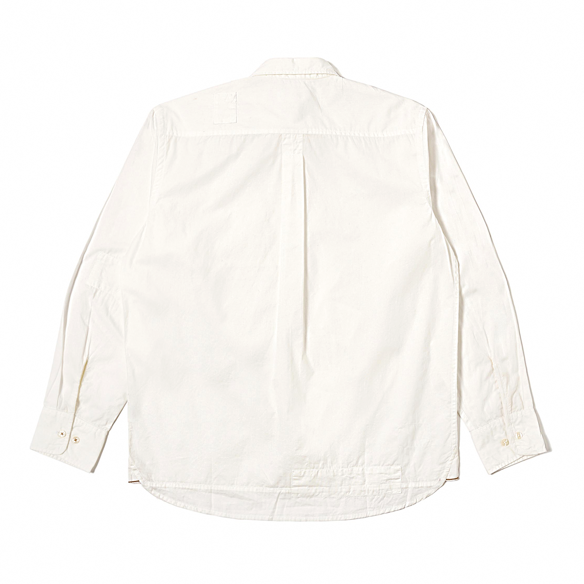 Universal Works Patched Lazy Day shirt made from cotton and finished in white.