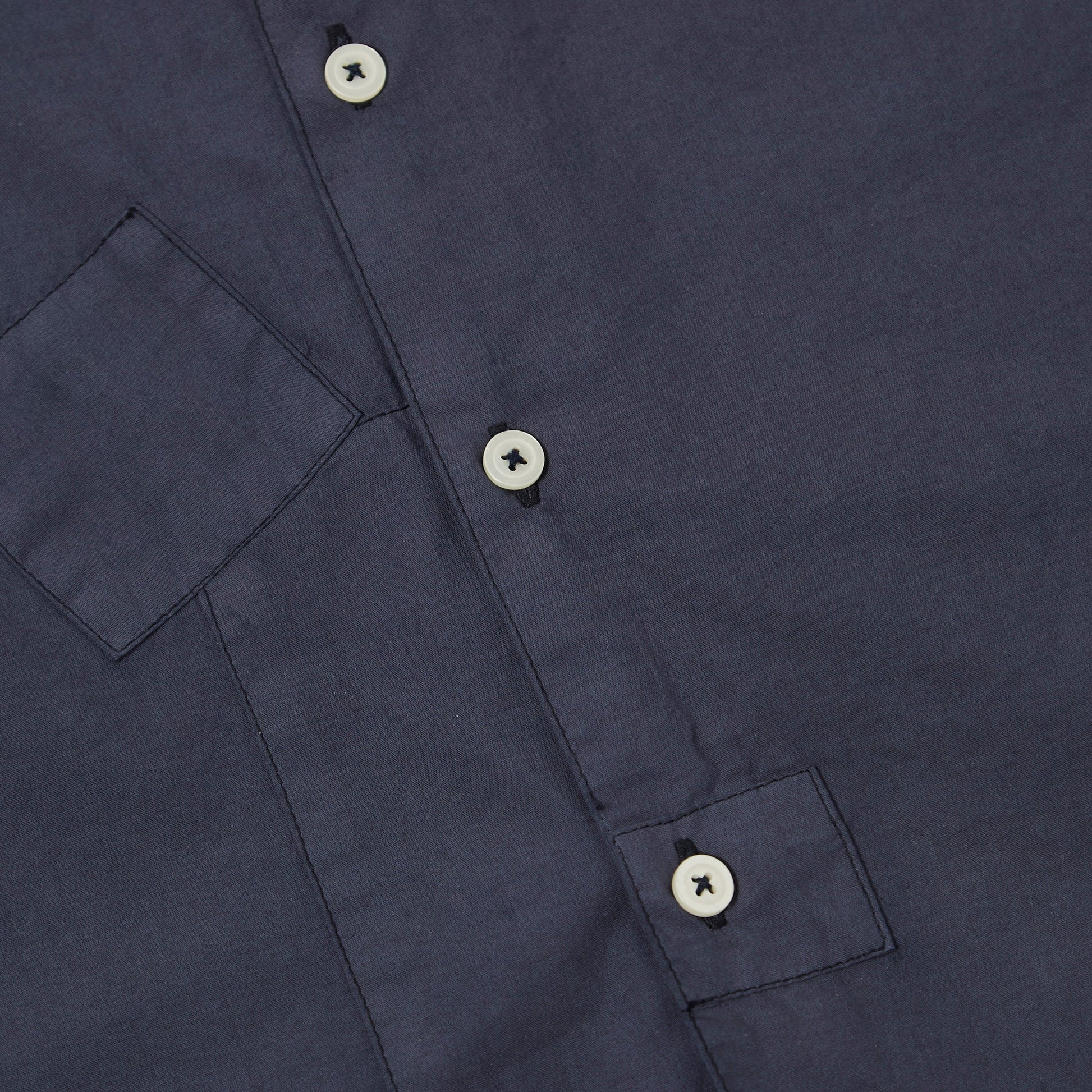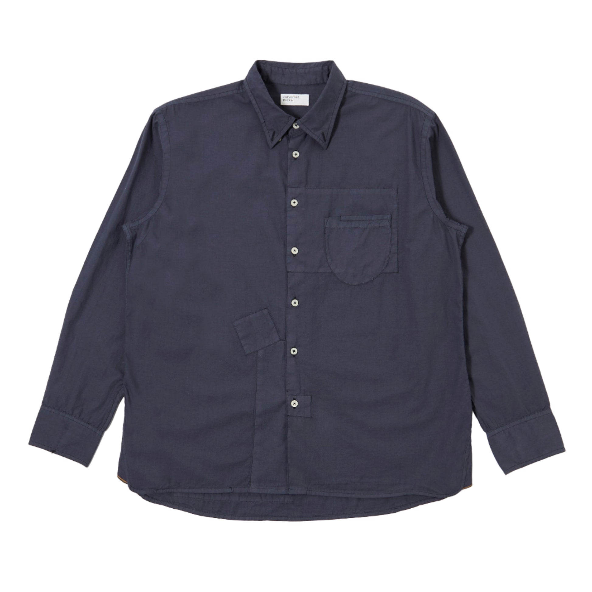 Universal Works patched lazy poplin shirt made from cotton and finished in navy.