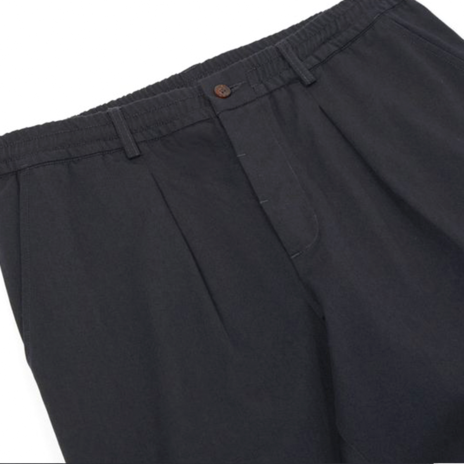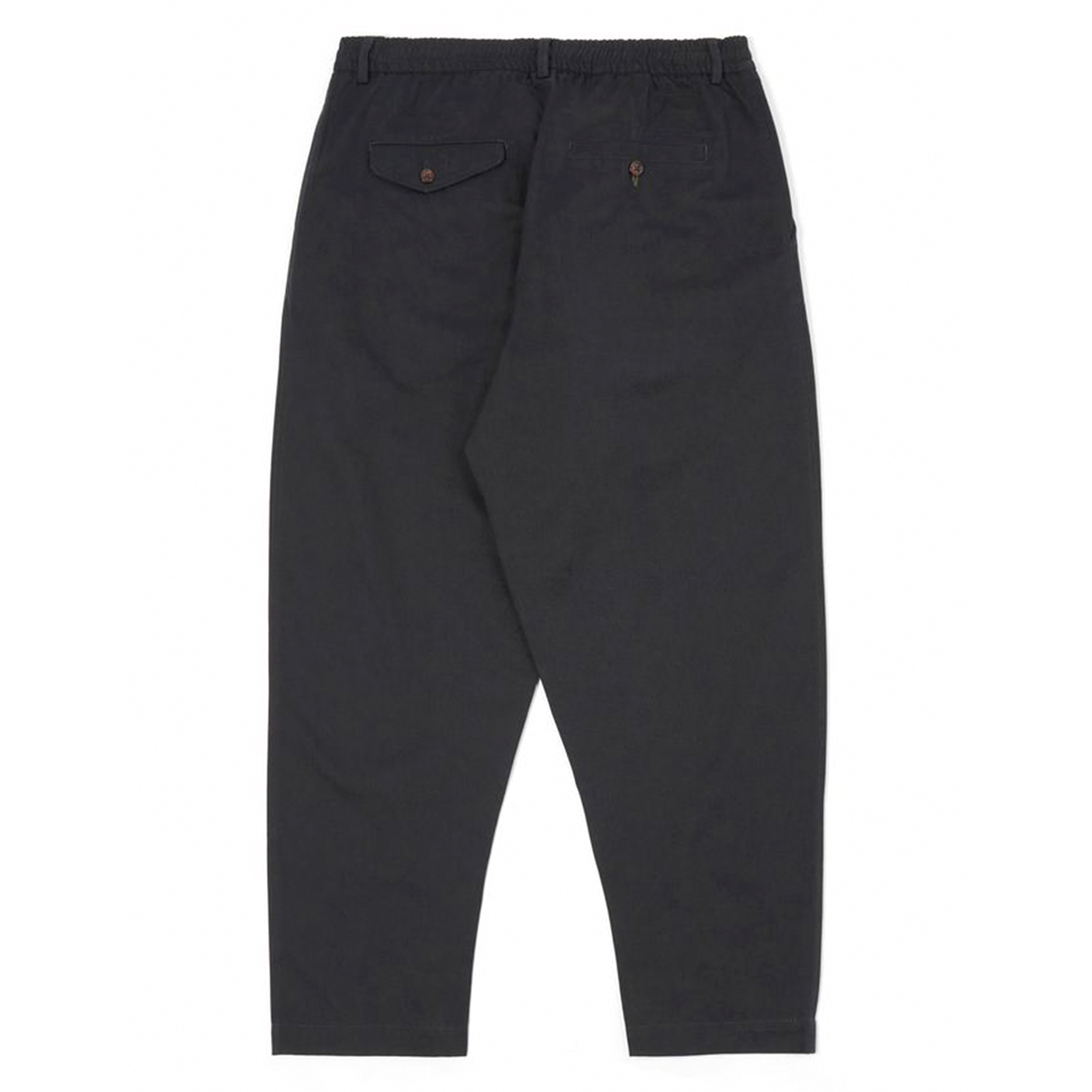 Universal Works Pleated Track Pants made from twill cotton and finished in black.