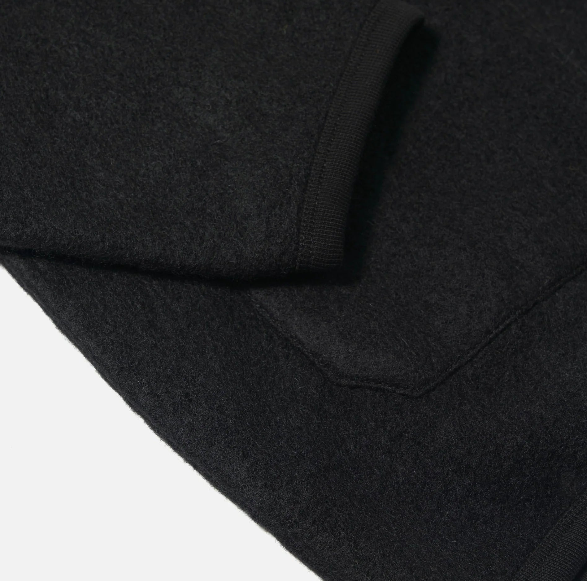 Universal Works wool fleece cardigan made from a wool polyester mix and finished in black.
